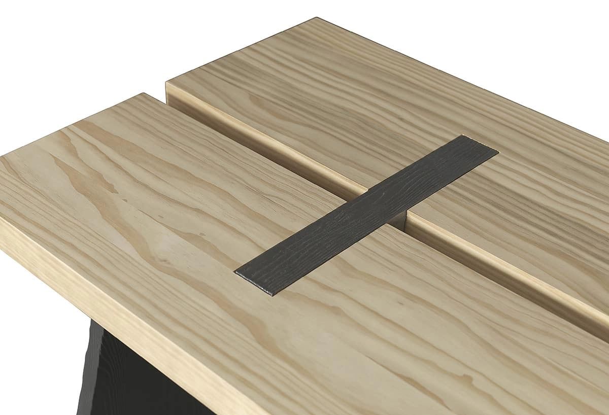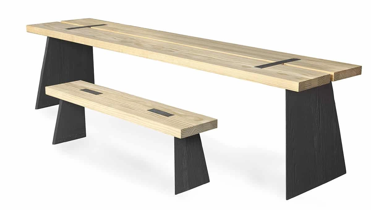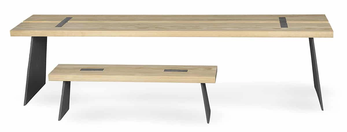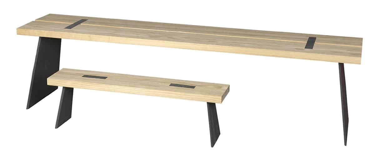 Table top and seat in Accoya. Base in cast iron.