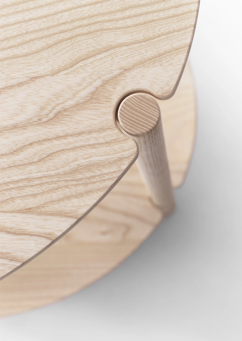 Made in natural ash treated with wax oil. Lunaria’s personality relies on the use of soft and warm wood and its subtle, irregularly rounded table top shapes – reminiscent of how the moon disc can appear slightly squeezed due to refraction of the light by the earth’s atmosphere.