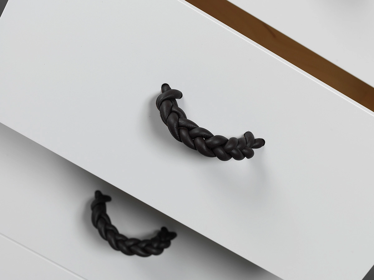 MAMA LOOK, chest of drawers by Anna Kraitz Lacquered frame, turned wooden legs, braided leather …