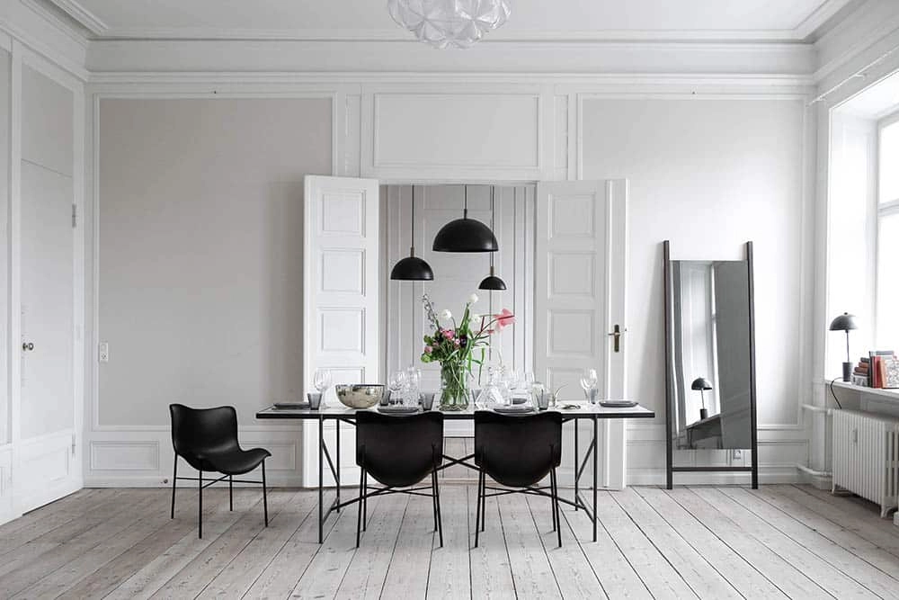 The slim powder-coated steel in balanced dimensions offer a light-weight silhouette while padded leather or velvet cushions complete the exquisite minimalistic design. Materials of the highest quality guarantees the most pleasant touch and a piece that will last a lifetime.