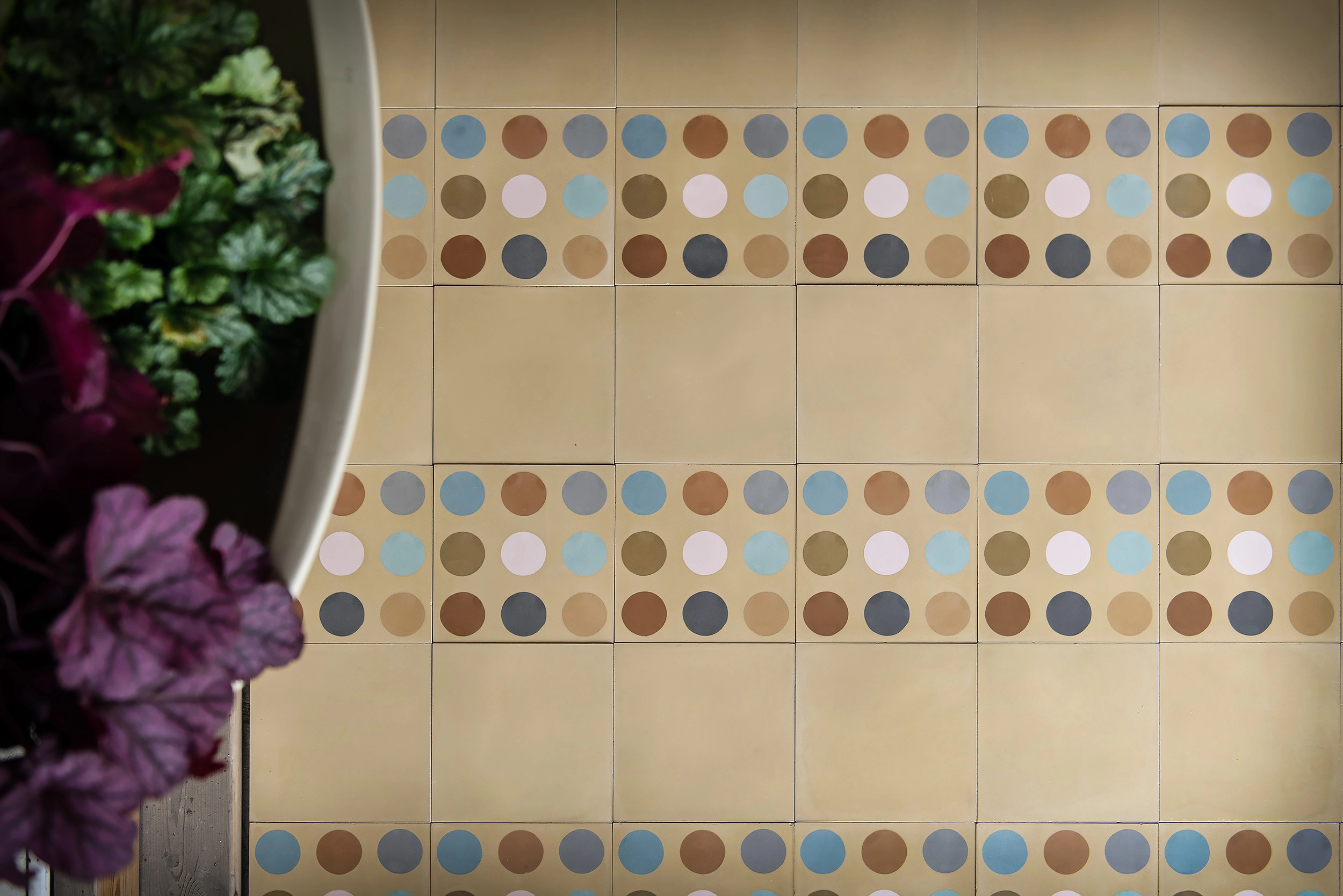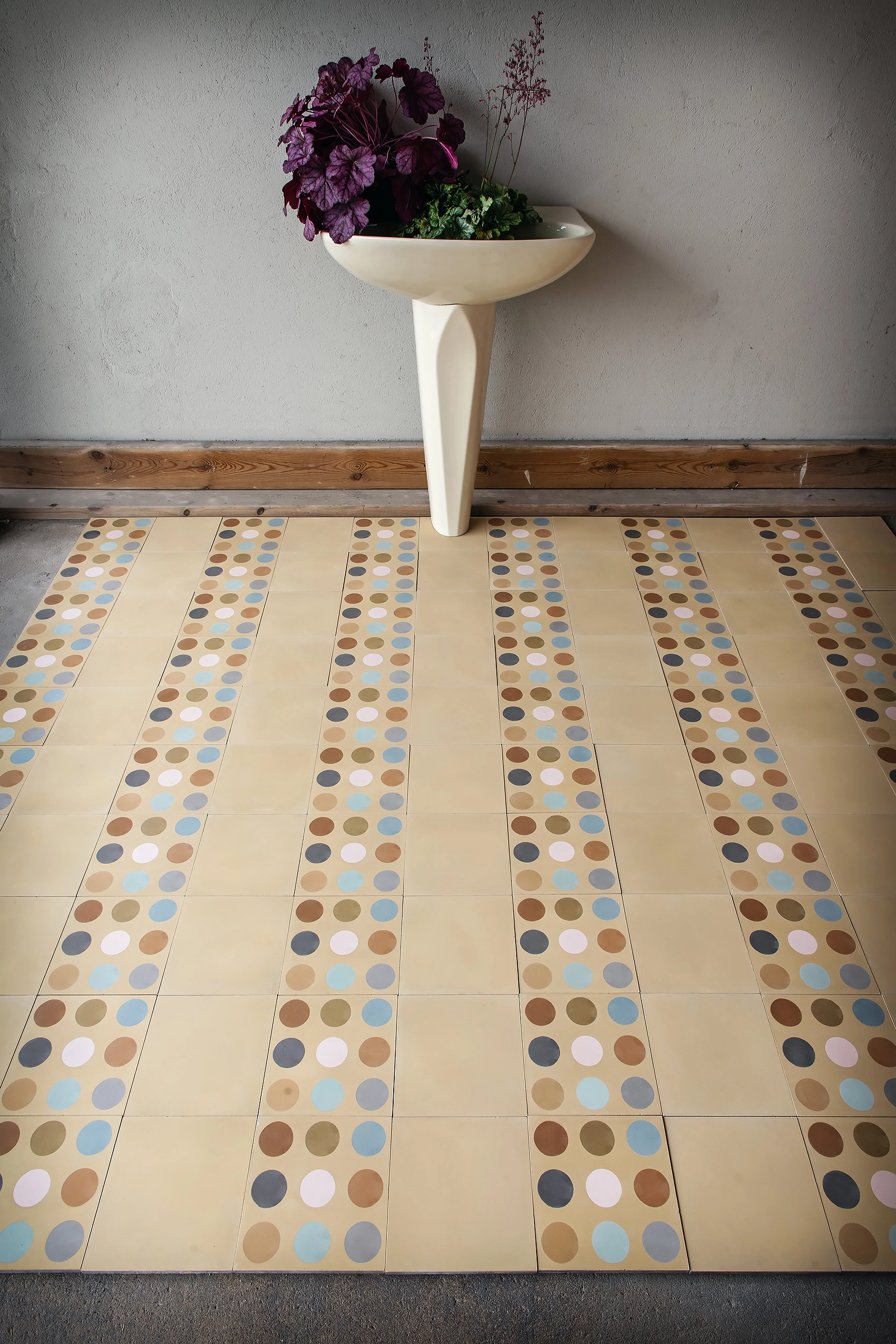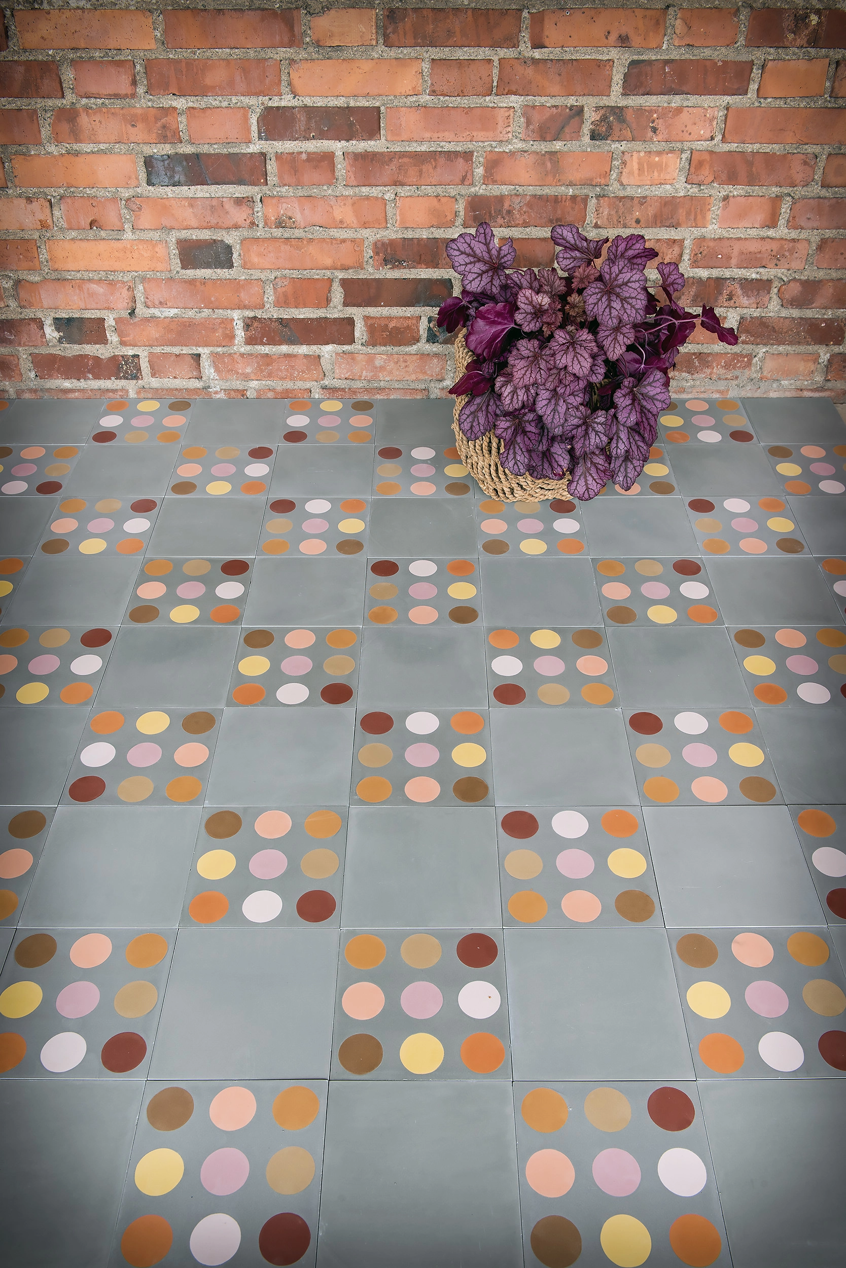 The series, in which the patterned cement tile has nine colour points of the same size, is available in three different variants with different intensities. Single-coloured tiles in the same colours complete the collection and create endless combination possibilities.