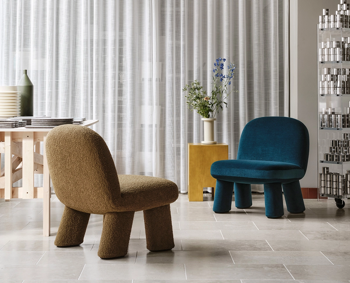 Invitingly wide and firmly anchored, Max is just as playfully expressive as Johan Ansander’s original Maximus from 2021. Instead of solid ash, generous seating comfort is now offered in an upholstered piece of furniture with precisely balanced surfaces. The front facing seams give a hint of a smile in an armchair that seems to have a life of its own. With a few Max around, you’re always surrounded by friends.
