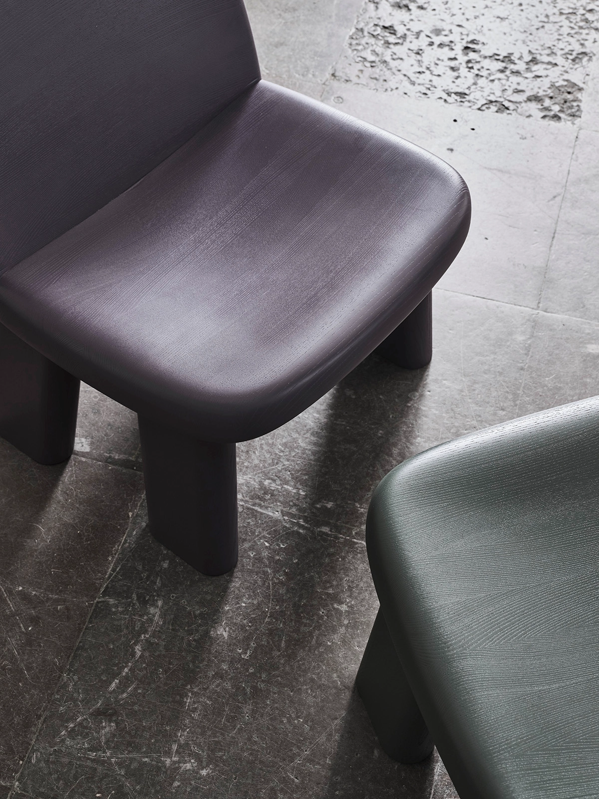 Light and soft, and like it’s sketched as a comic strip furniture piece, but made out of heavy duty massive ash. Maximus is a playful departure from angular and rational furniture with a mimetic attitude reminiscent of Keith Haring. Johan Ansander completed his master degree at Konstfack, University of Arts, Crafts and Design last year, and was immediately approached by Blå Station. By using 3D-modelling CAD-software for CNC wood routers, Johan Ansander aims to explore how locally sourced material can be used in a contemporary way. Maximus is all but angular with laid-back comfy forms. Both the seat and the backrest are made out of two reversed pieces of ash; the legs are also made out of massive wood. Maximus is available in clear lacquered wood, or a choice of colours.