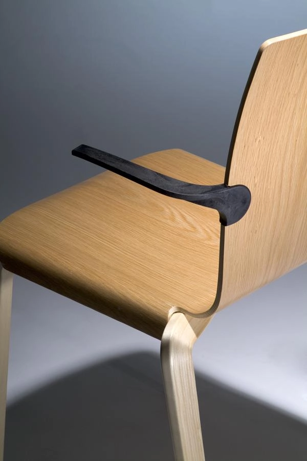 The chair’s defining feature is its carefully proportioned armrests – reduced in depth to allow the chair to hang from table edges, facilitating easy floor cleaning in cafés, conference rooms, and public spaces. This practical detail exemplifies Lindfors’ approach: solving real-world challenges through refined design.