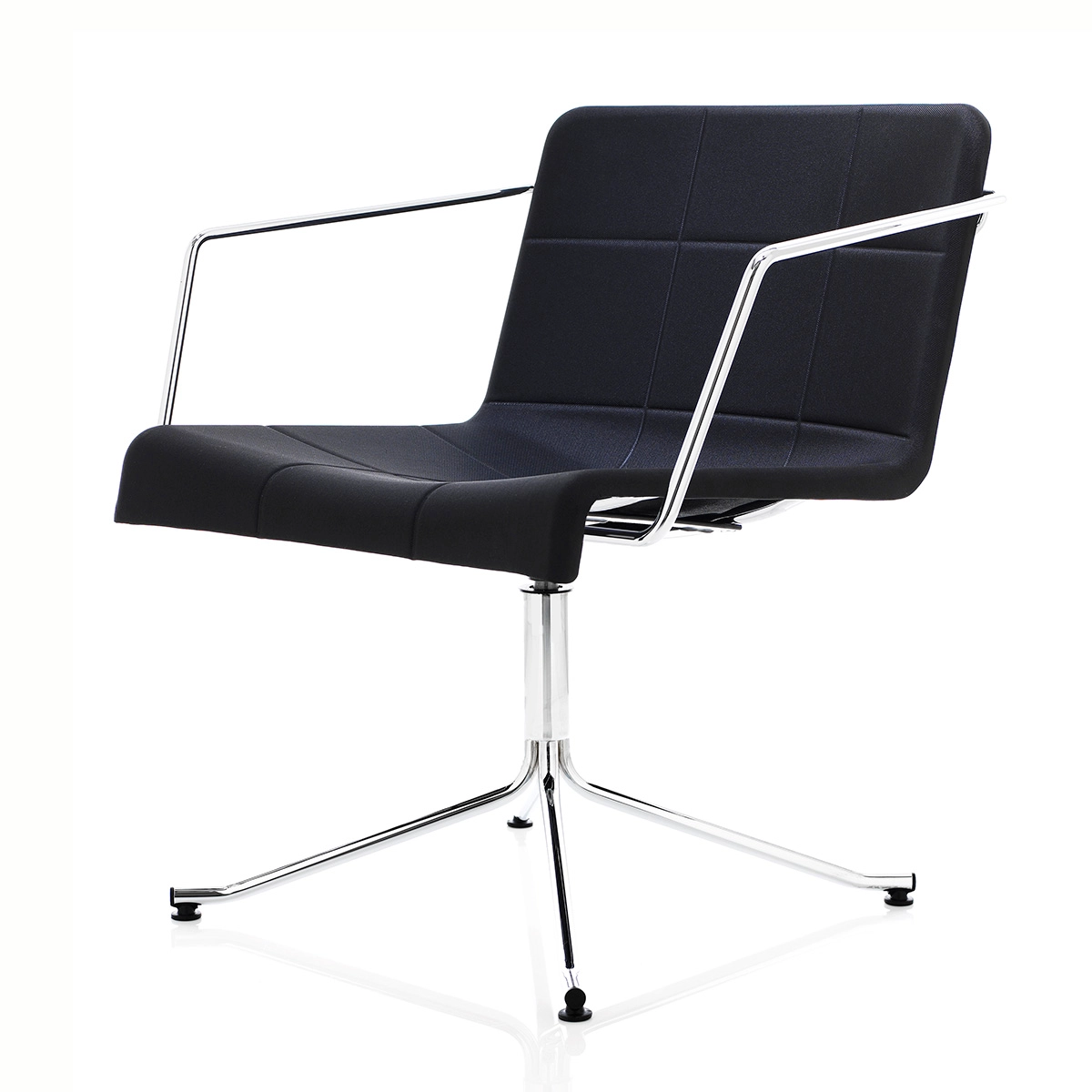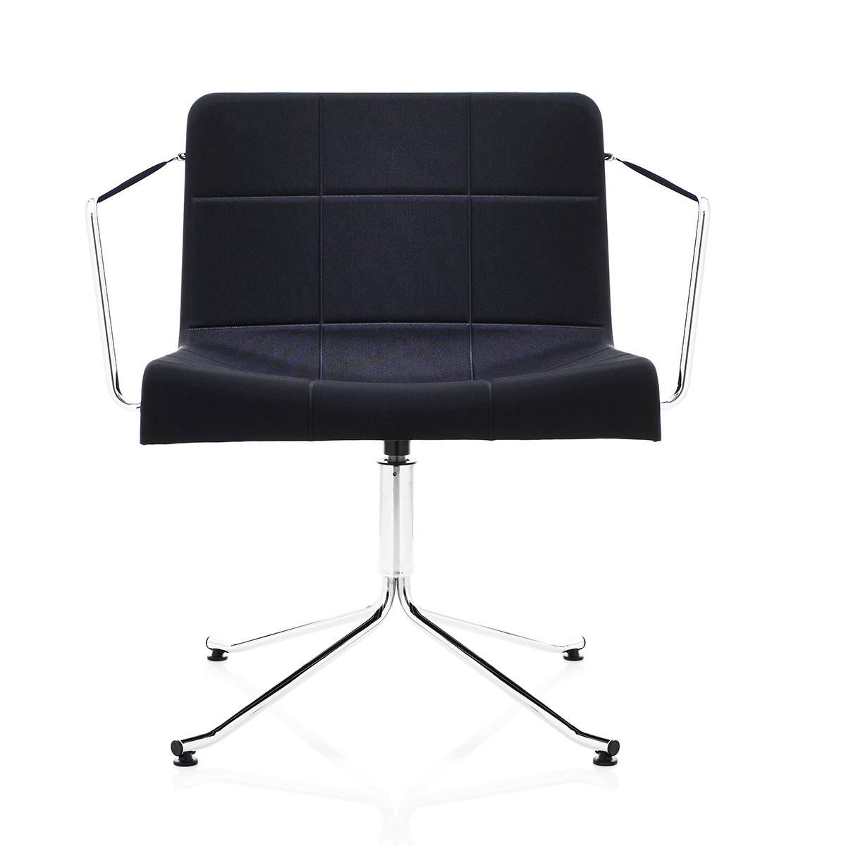 Millibar chair/lounge comes with two different frames, a stackable sled base and a swivelbase. The lounge chair also comes with an armrest.