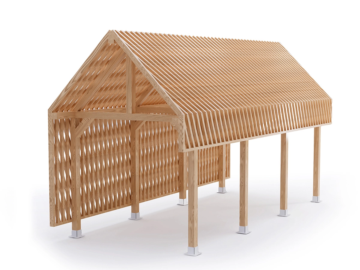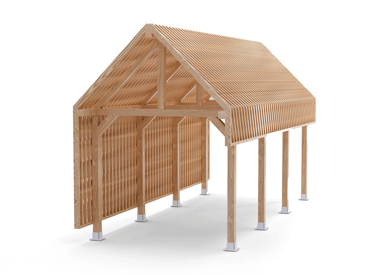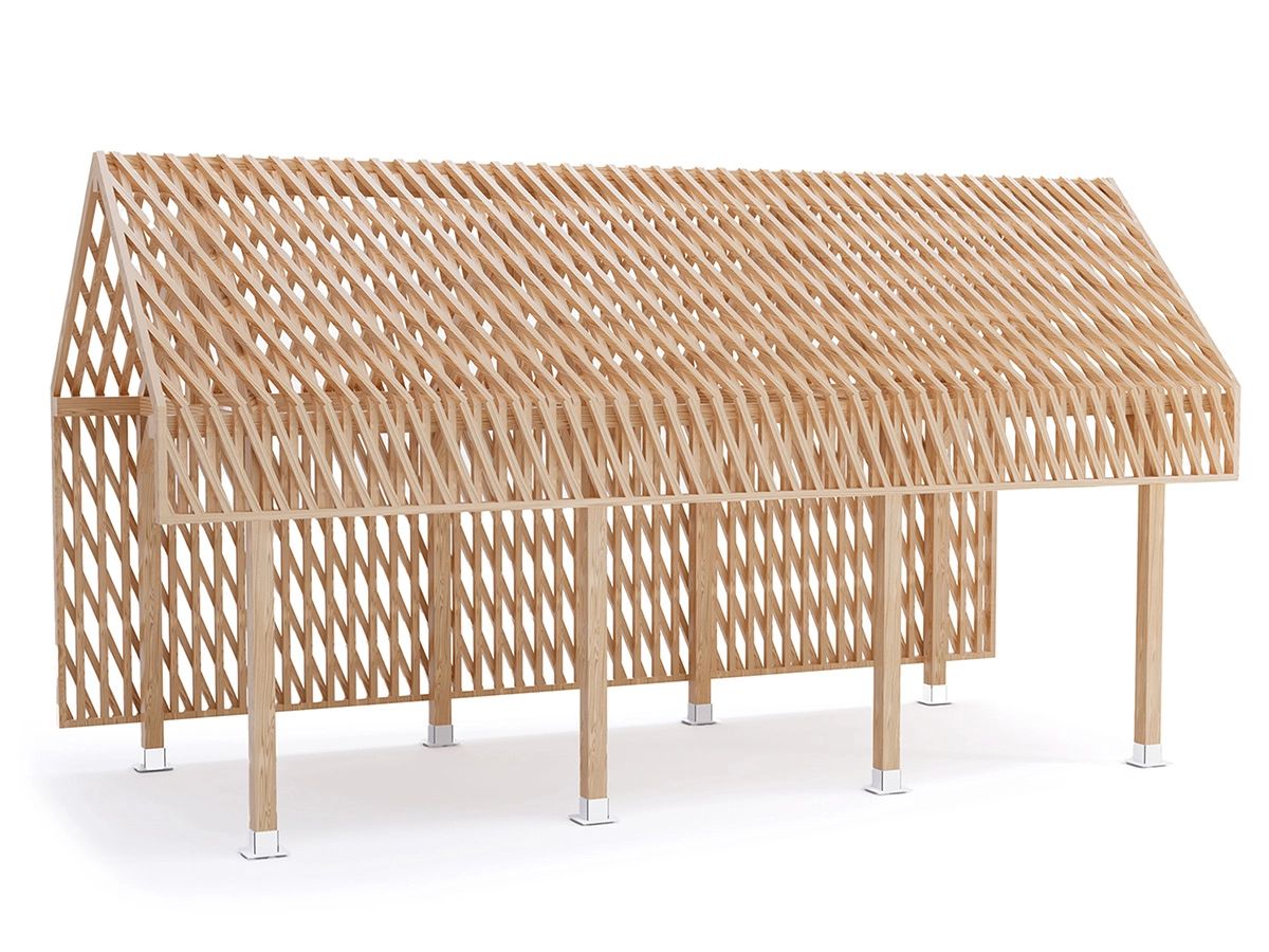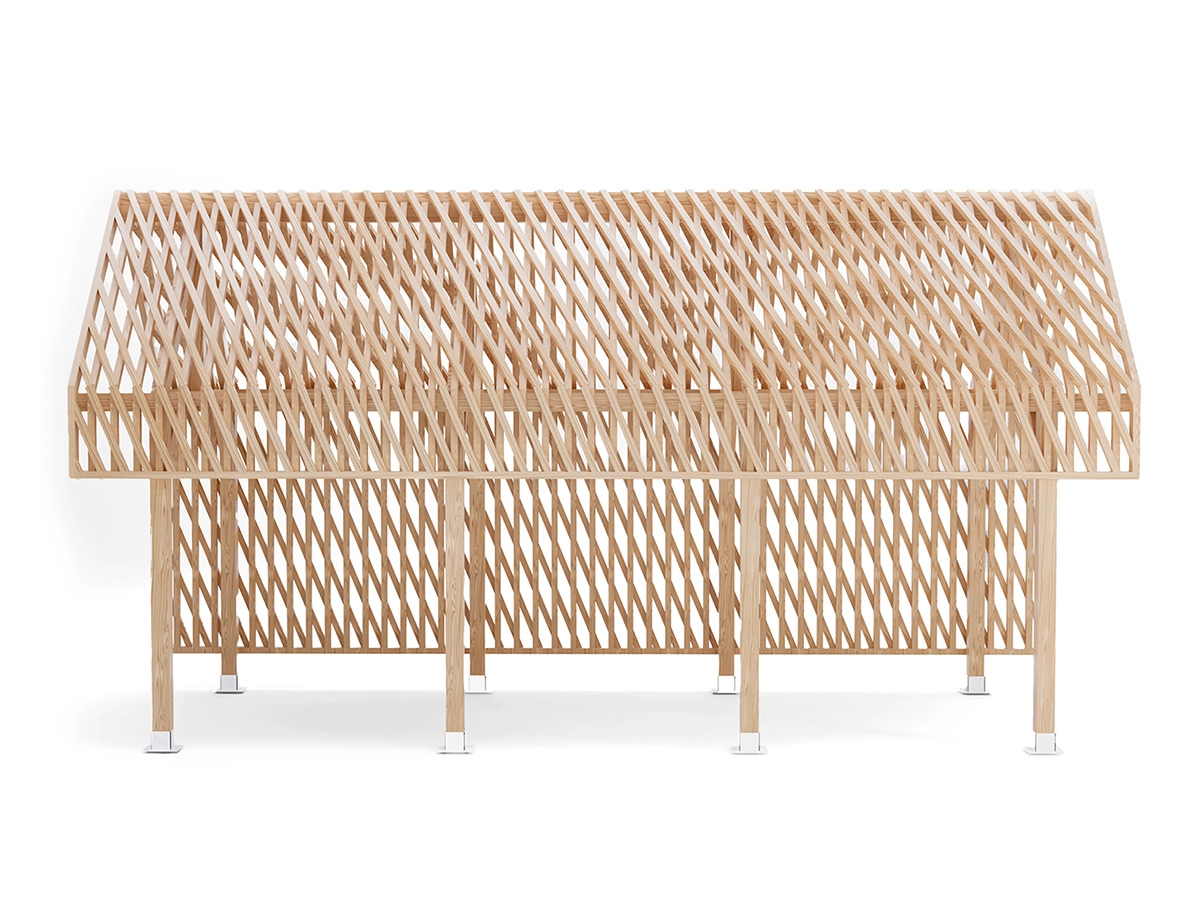 Moiré is a pavilion and weather shelter with an architectural reference to urban shapes, as well as an aesthetic flirt with pragmatic barn structures. Its distinct house-like shape complements Nola’s range of pavilions and pergolas, speaking the language of the city. It is rationally constructed with a load-bearing wooden frame and can be built to any length with dividing sections at specified intervals. The frame can, in turn, be adorned with layers of slats in different patterns and colours, trellises for climbing plants, or other materials such as channel plastic or, for example, transparent corrugated roofing for additional weather protection.