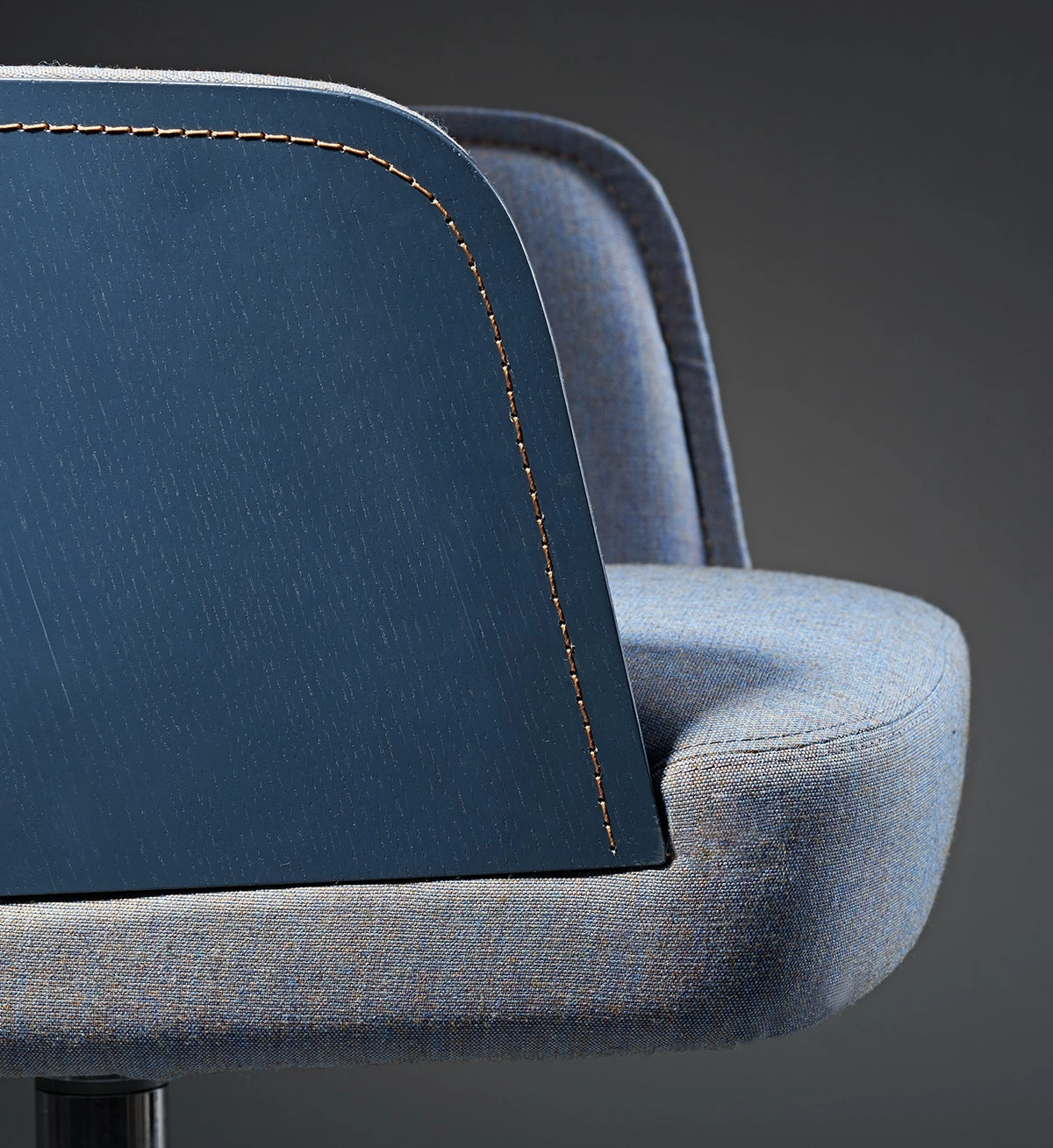 Mr N is the chair at the cutting edge between tailoring and carpentry. Using extreme seams, Färg & Blanche have developed a technique to sew together the inner upholstery and the moulded wooden back, without pre-drilled holes. The result is a chair that exudes craftsmanship and gives character to otherwise formal meeting rooms. The outer stitching and structure of the wood give a tactile feeling, while the inner double seams are reminiscent of a well-tailored suit. At the same time, the natural materials and choice of fabrics make it equally at home in a classical boardroom as in modern, creative environments. A multifaceted design ensures you are sitting comfortably, no matter what the meeting is about.