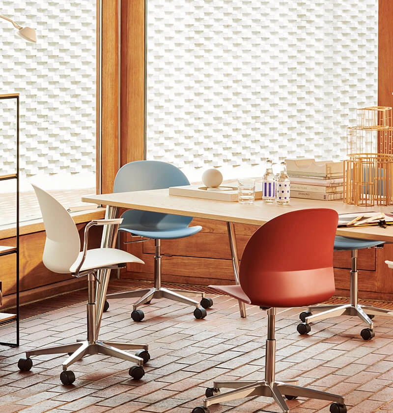 7 shell colour options are inspired by earthy, warm tones in Scandinavian nature. These colours and multiple leg options make N02™ Recycle a strong solution for dining rooms, home offices, meeting rooms or as extra, multi-purpose seating. The wipeable, plastic shell is child-friendly and very easy to clean.