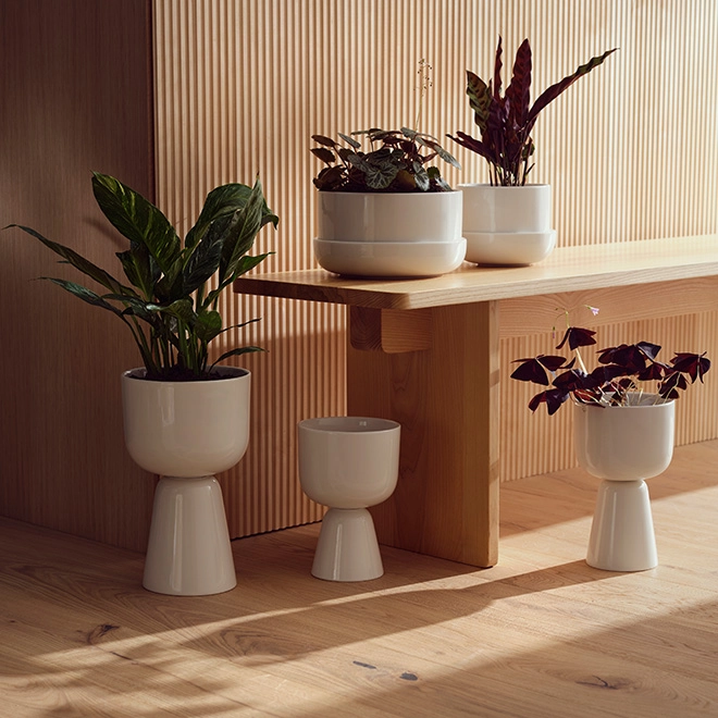 Nappula’s playful silhouette was inspired by the odd feet of an old table designer Matti Klenell saw at the Nuutajärvi Glass Museum in Finland. He first incorporated the shape into a wide array of candle holders that all carry the soft, round design that combines Klenell’s love of vintage and contemporary details. Klenell then applied the unconventional form into plant pots that showcase the same distinct design with a flowing curved shape and a sturdy stem.