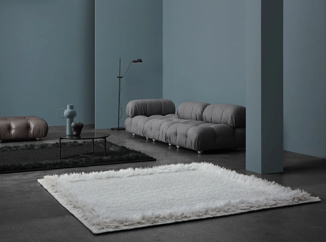 Two strong women. Two new patterns. Named after two super models, these shag rugs can be traced back to “Ray”, their original predecessor with its classical harlequin pattern. These elegant, yet playfully linear-patterned rugs express a freer form based on the same colors. Naomis central image with beaming diverging lines and Kate with a free chequered shape in the middle and mikado-like irregularity. Strong, simplistic identities in lively wool and linen is fitting for elegant homes, sitting rooms and bedrooms. Kate and Naomi also fit ideally in a lounge or with a set of sofas in low traffic public spaces. To trigger your creativity, they are available in a shape and size of your choosing.