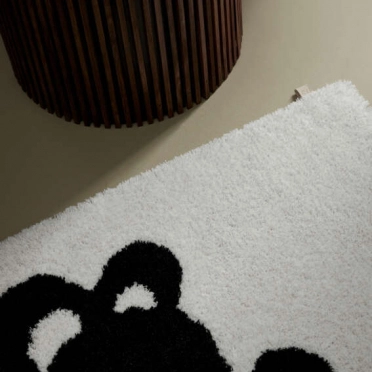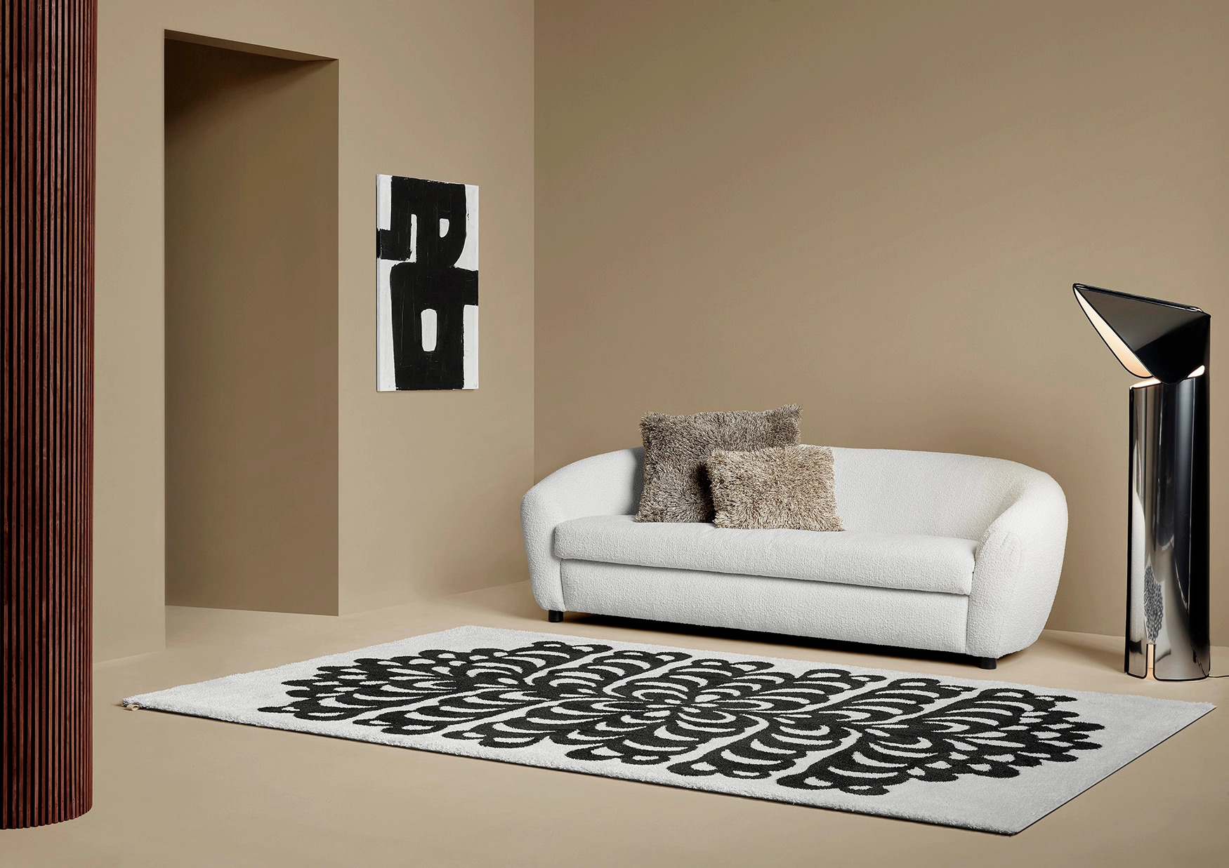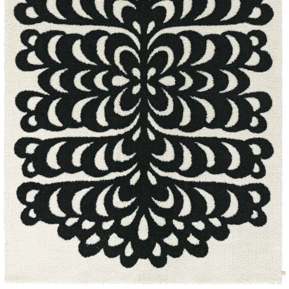 Black and white graphic rug in wool and linen in a unique color scheme. Time-typical floral design which, thanks to its color and organic graphic form, is trend-sensitive with its timeless personality.