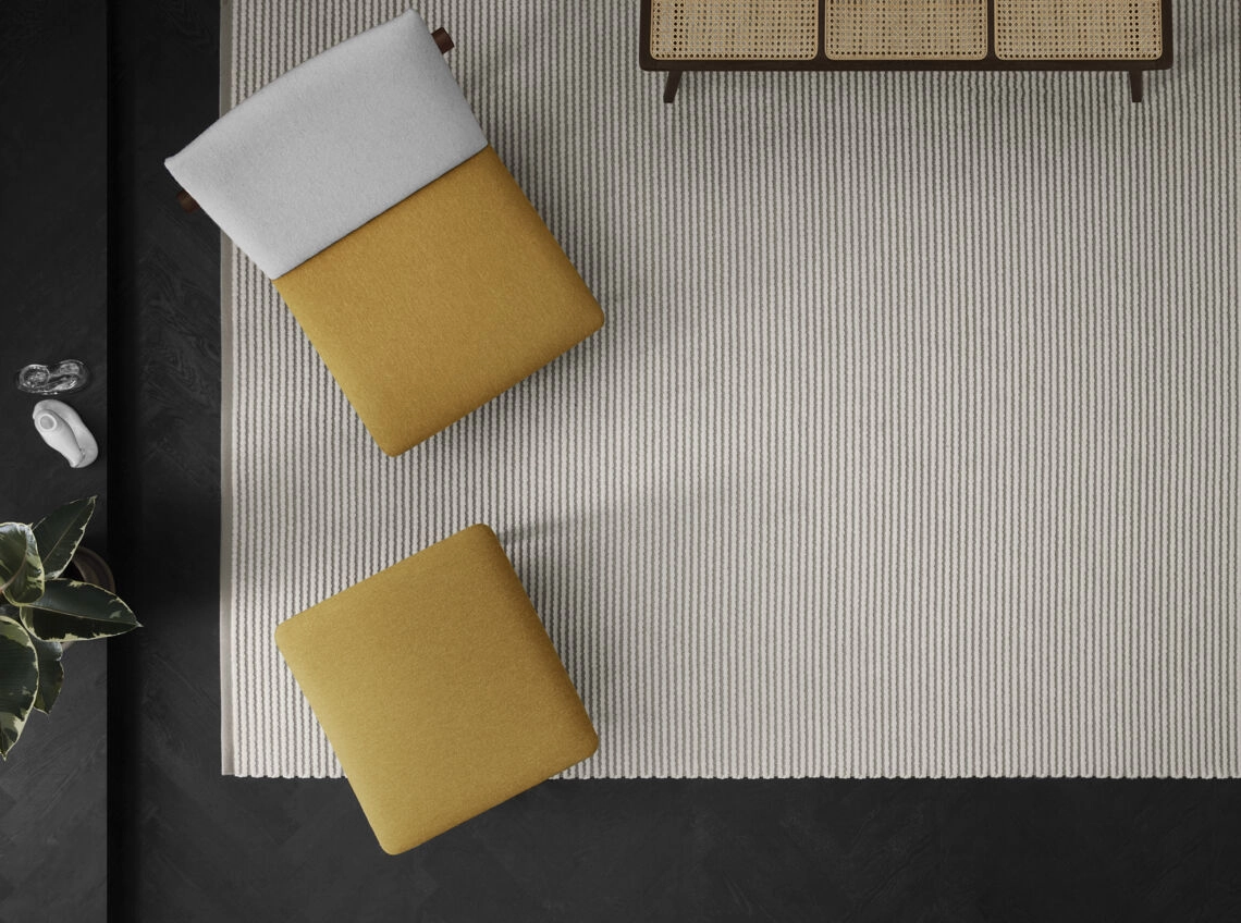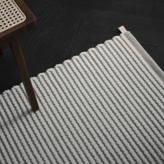 The awarded String (Svensk Form/Design S, 1998) has a crosswise corduroy line that flirts with the trendy and popular 70-ies. An expression of artistic minimalism that curiously explores proportions and material. In experimenting with new yarn colors in combination with existing ones, we are aiming for an expression that will present new homes for the rug – a bedroom or sitting room, or other sparsely trafficked spaces where you can tread on it and admire it.