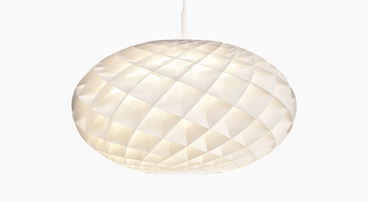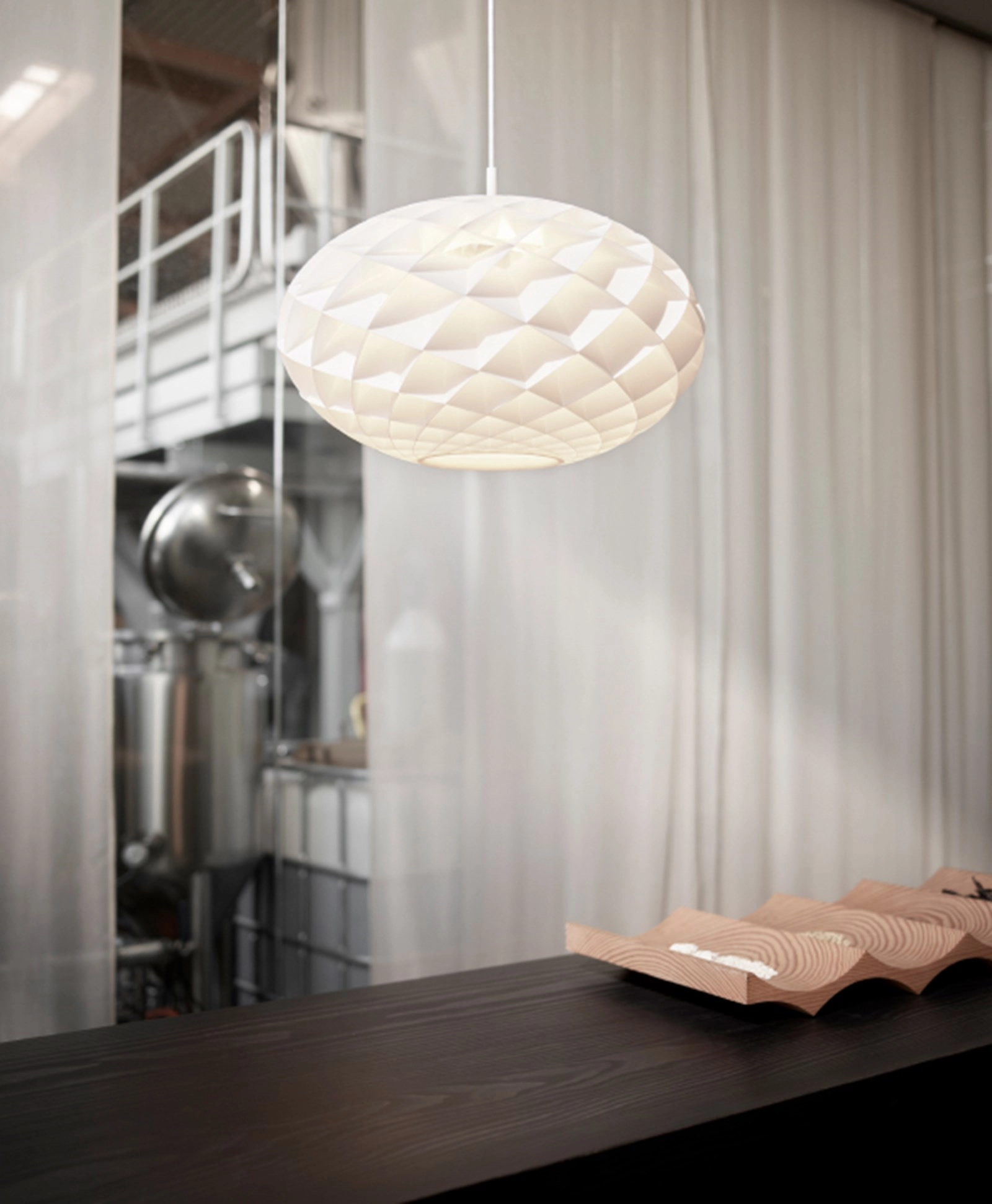 Patera Oval is made up of diamond-shaped cells where each cell is carefully designed to reflect glare-free light when viewed from an angle of above 40 degrees – all while it emits a 360 degrees illumination that bathes surrounding spaces, people and objects in a natural, even and pleasing light. The round opening underneath provides direct light, with a soft transition to the reflected light from the cells, making the pendant perfectly suited to hanging above dining tables, as the flat oval shape allows for easy eye contact below the shade, as well as providing ideal light across the table. “The new version is designed to hang above tables in urban apartments, where the ceiling might not be as high. I wanted to design a pendant that requires less space, but still provides full light on the table,” says the designer Øivind Slaatto.
