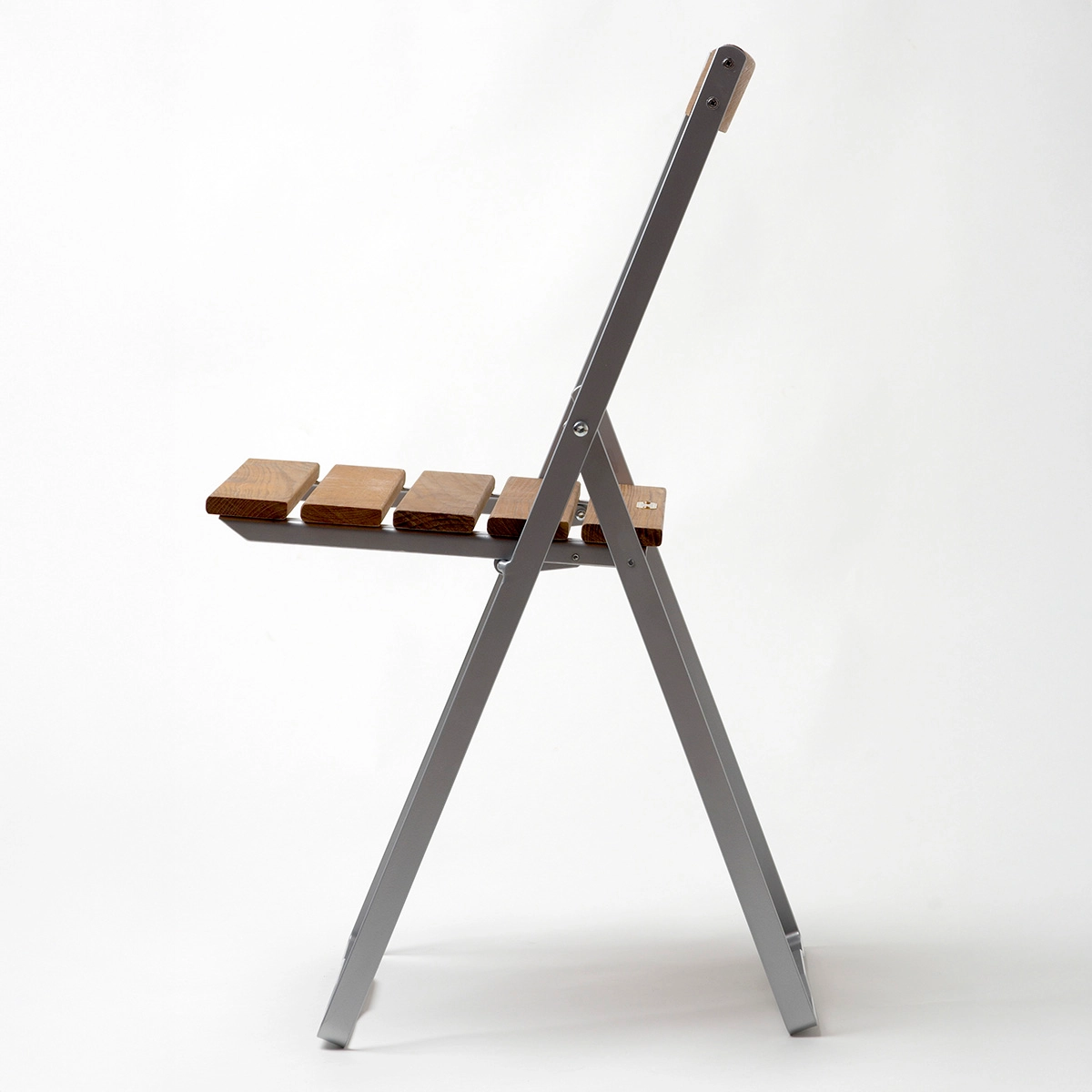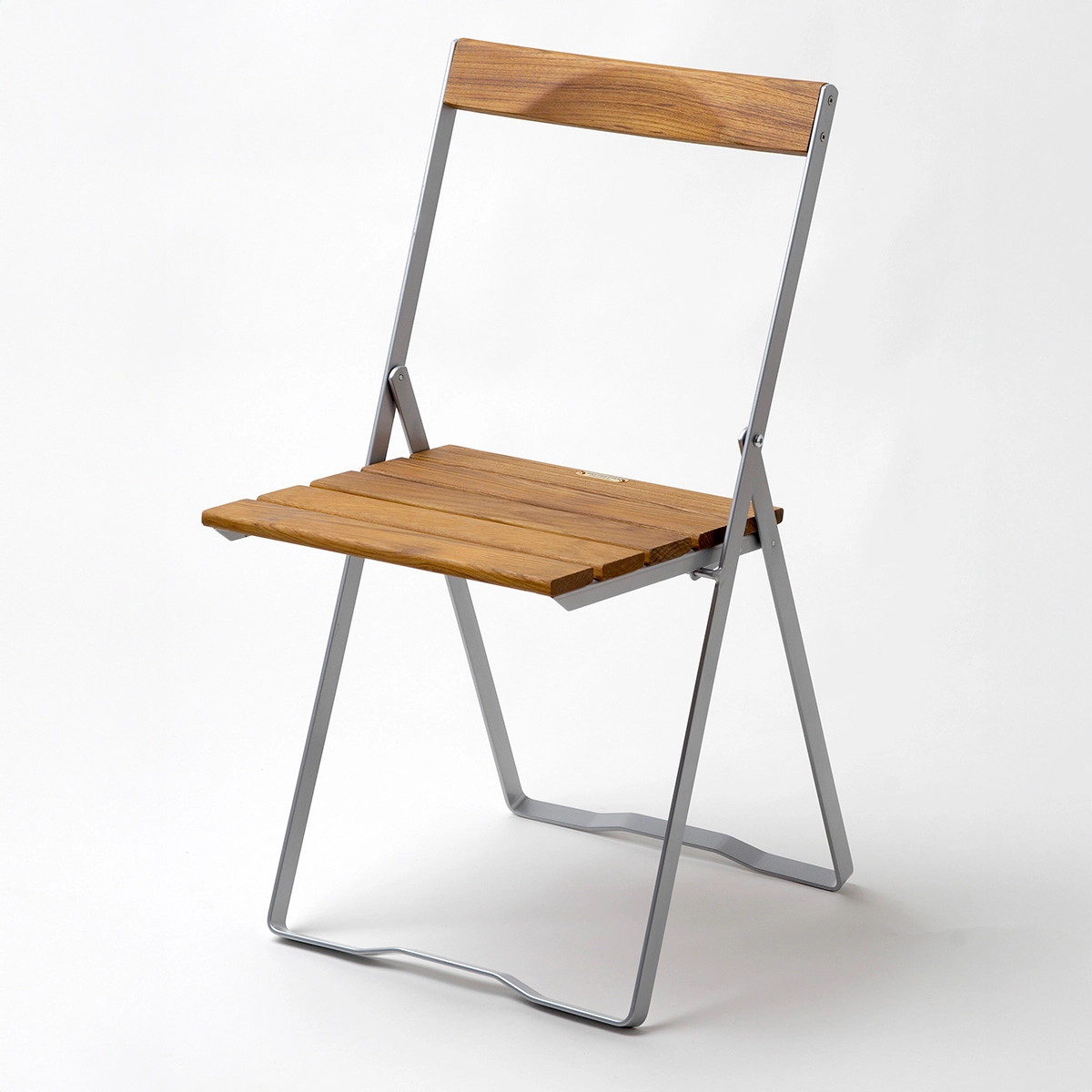 Was introduced as a ”Great success” in year1940. The price at the time was 8: – Sek. The folding chair, its only 4 cm fold up, has a lacquered steel frame and wooden parts in oak or Teak. Weight 5,5kg. Made in Sweden.