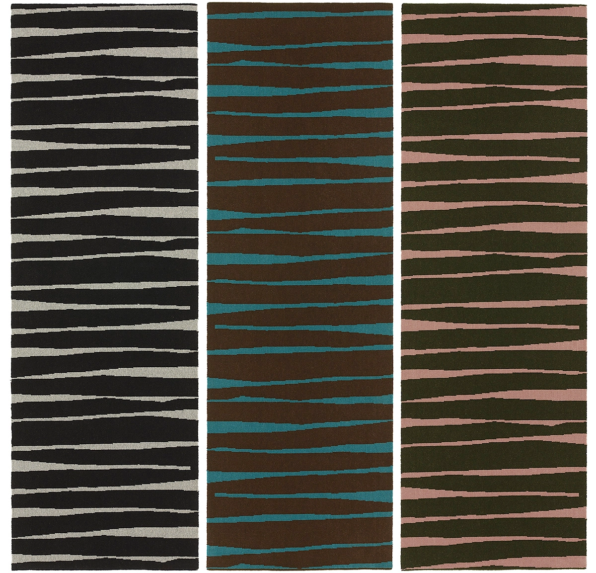 plowed field is the source of inspiration for this unusual irregular striped pattern, and the impression it creates