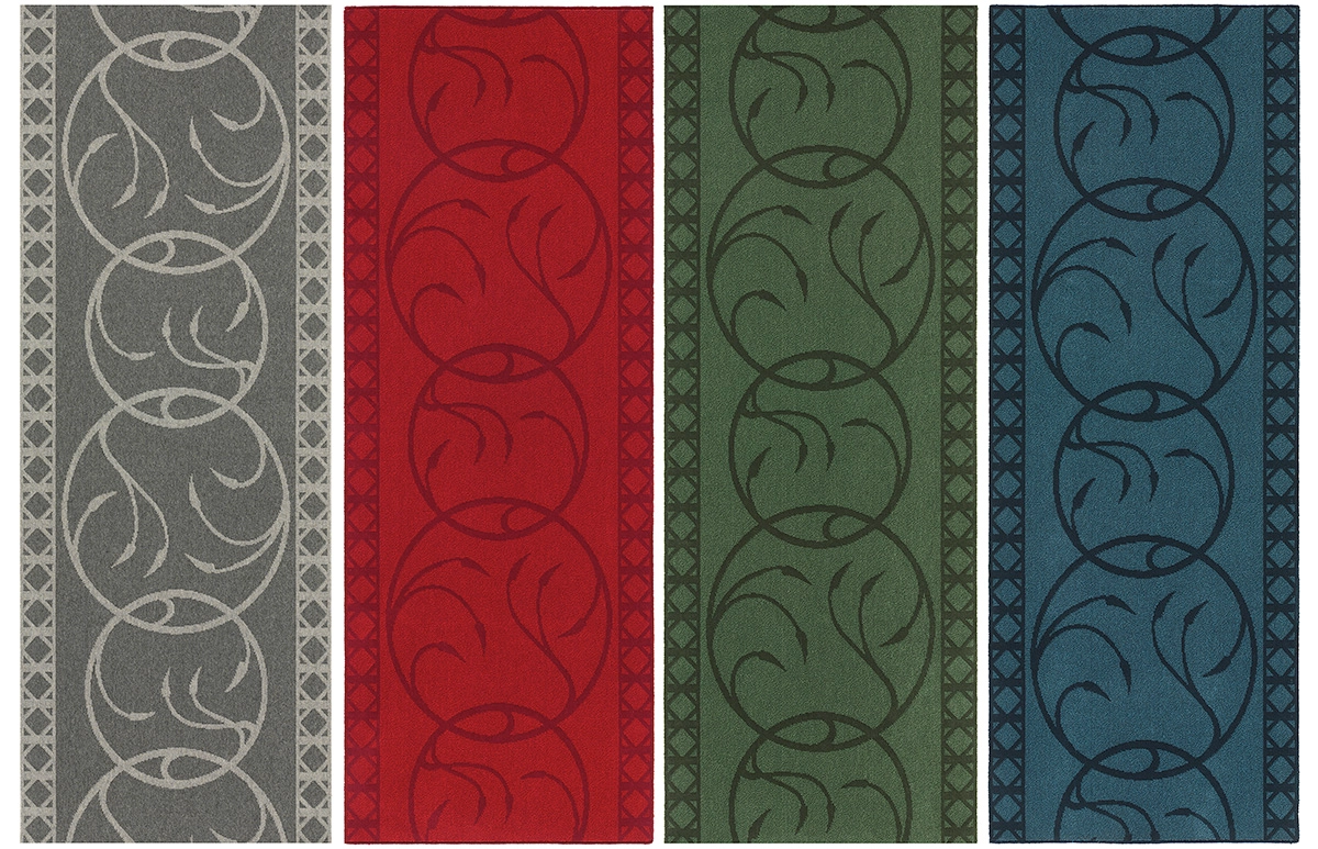 available in five colours. The carpet can also be ordered as an area rug with stitched edges, in any size or