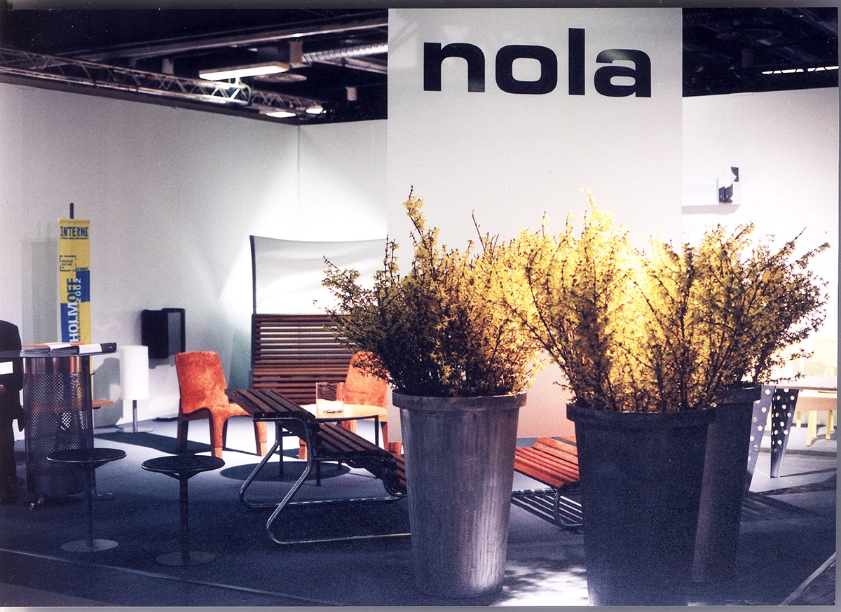 Stand-up In connection with Interni producing a guide to Stockholm Furniture Fair for the first time, they invited designers Mårten Claesson, Eero Koivisto and Ola Rune to design a flag holder. The flag holder marks the exhibition venues that are represented in Interni’s design guide for Stockholm and has been named Stand-up. Nola has produced the flag holder Stand-Up and it can be seen at the exhibiting companies participating in the Interni guide 2002. Stand-up will be included in Nola’s regular range and form the basis for a completely new series of indoor products, created from the same concept.