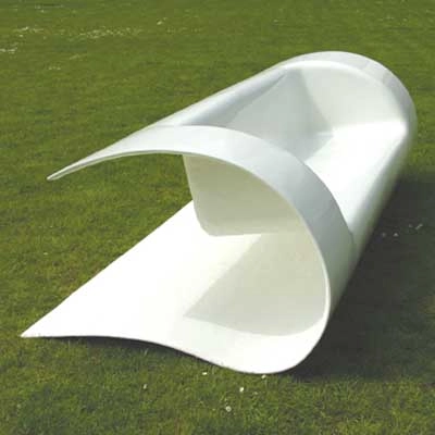 Made in fiber glassed polyester and soft gelcoat, Flow is for the easy sitting. Flow has its name from the silhouette of the sofa, and alludes to undulation and the geometry of the sea.
