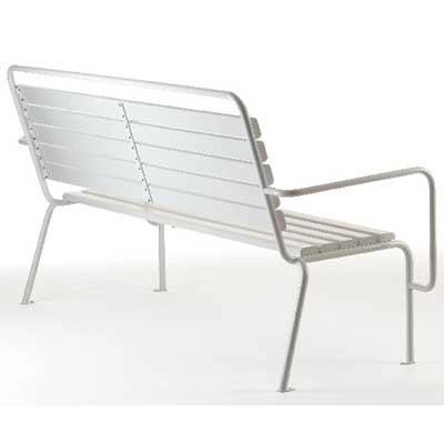 Pastiss backed bench Design: Gunilla Hedlund This playful bench is crafted from pieces of laser-cut …