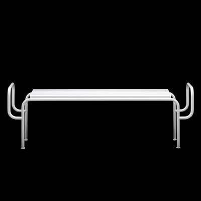 With the sofa and bench Goal, Thomas Bernstrand has, in a personal way, made a heavy and solid outdoor furniture. The laths of tubular steel and thick rubbercoating made out of PUR makes the seating comfortable in all kinds of weather. The usage of PUR Is commonly used in playground equipment for Its durability and softness combined. Goal Is an exiting alternative to the more traditional suite of furniture made out of steel and wood.