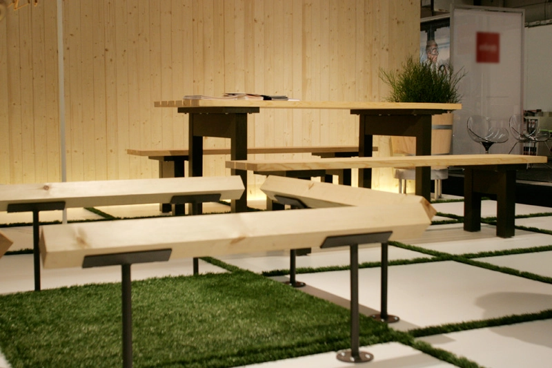 The Island furniture group challenges the traditional and rectangular bench table with its organic and …