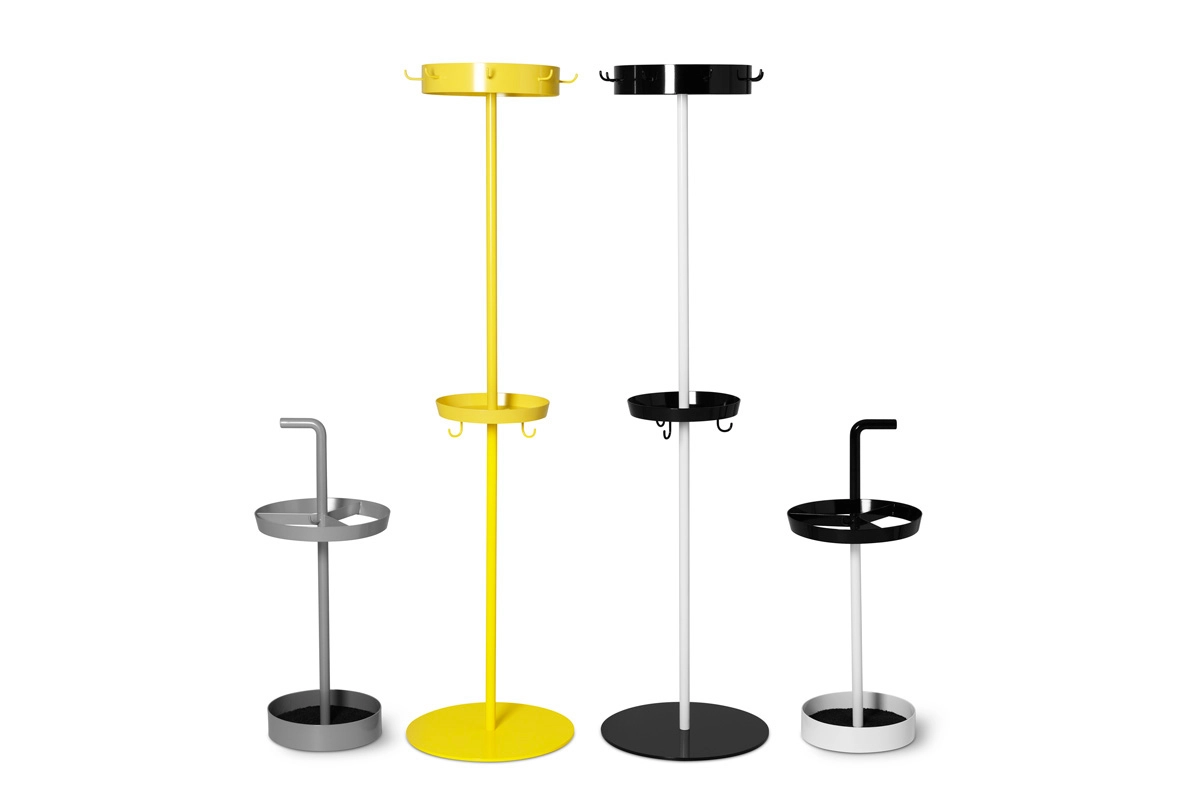 Cold winters require extra layers, and making space to hang cold-weather clothing is a constant consideration when temperatures drop. The Dom Q coat rack provides a sleek solution in the form of a central post where clothing can be hung from two tiers of hooks, eliminating the need for coat hangers. Dom Q is also equipped with an integrated tray where keys, phones and i-Pods can be placed while jackets are being removed.