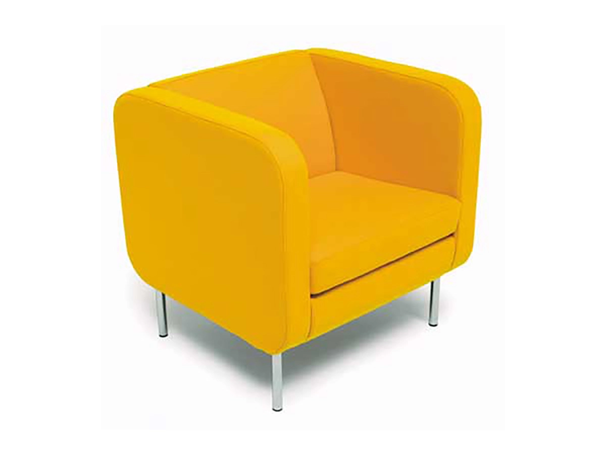 The DOWNTOWN SMALL easy chair has the same modern feeling with rounded corners that is the trademark of DOWNTOWN. The generous dimensions have been brought down to make the chair fit small rooms and environments where space is in short supply. DOWNTOWN SMALL works perfectly as an independent piece of furniture, but also with tables like Doppio or Dual from OFFECCT. DOWNTOWN SMALL has seat and back in cold foam with flameproof fibre and is upholstered in fabric or leather. It has a wooden frame with Nozag spring system and the legs are in chromed or lacquered metal.