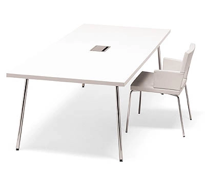 The METRO conference table is a simple piece of furniture with the same distinct legs and shape as its forerunner, the chair. Thomas took his inspiration for METRO from Lego and the shapes that are created when the pieces are joined together. A power and telecom unit has been built into the table. The original aim was to create a product suitable for a simple manufacturing process which could be sold at a reasonable price.