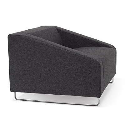 SLIDE is based on the same cubic shape as the other two systems, but it rests on thin runners. The ends are cut diagonally to give the sofa a sense of openness. SLIDE is very harmonious in shape because the back and armrests flow in an unbroken line which is elegantly finished off by the narrow runners.