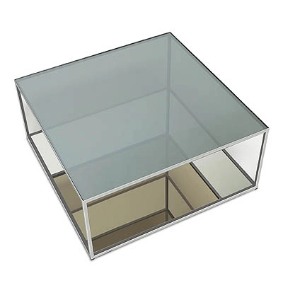 The VERTIGO table carries a secret beneath its surface. The name VERTIGO means dizziness, often caused by a fear of heights. Anyone looking down at the table’s glass surface (made from ‘spy glass’) will notice a hidden function: an additional pane of mirror glass in the lower shelf, which creates an optical illusion, a feeling of bottomless depth.