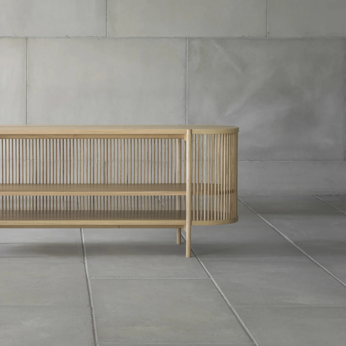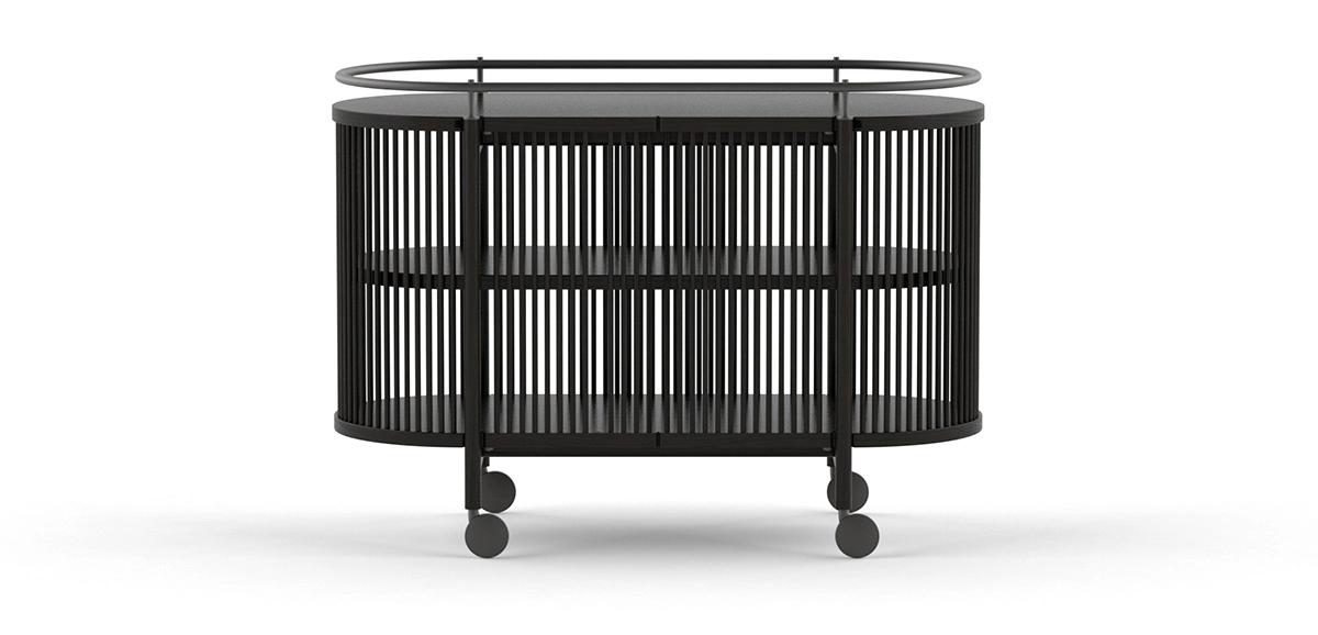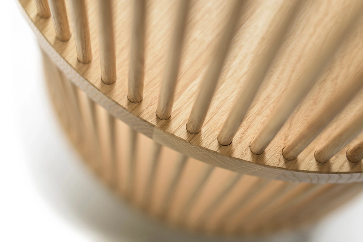 through a new collaboration with Poiat beginning April 8, 2025. Designed by master cabinetmaker Antrei Hartikainen in 2018 (with updates in 2021-22), these sophisticated storage pieces feature distinctive wooden dowel rods—”bastone” in Italian—creating mesmerizing patterns of light and shadow. Available as both cabinets and sideboards, with or without doors, in natural Oak or Stained Black, the Bastone series exemplifies the exceptional craftsmanship and timeless design now united under Nikari’s stewardship.