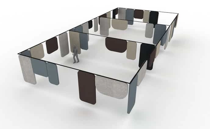 Notes by Italian designer Luca Nichetto is an eco-friendly acoustic panel that encourages interaction and creativity. Notes consists of five differently shaped acoustic screens that hangs on a rail and that can be rearranged to create a wall by moving them sideways. Notes introduces a sustainable and unconventional construction that now will push acoustic panels in a new direction.