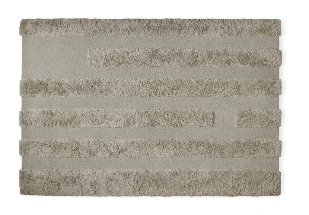 Space is inspired by unique textile patterns and surfaces, the collection is available in the colours Desert, Ivory and Oyster. The cut pile is produced in wool and thick botanical silk and the looped pile areas are produced in wool.