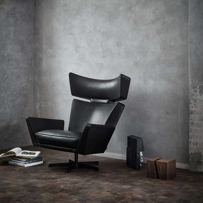 It took Arne Jacobsen nothing less than five years to develop the Oksen™ design. In contrast to many of his earlier pieces that are characterised by rounded, organic shapes, this easy chair has a much sharper outline.