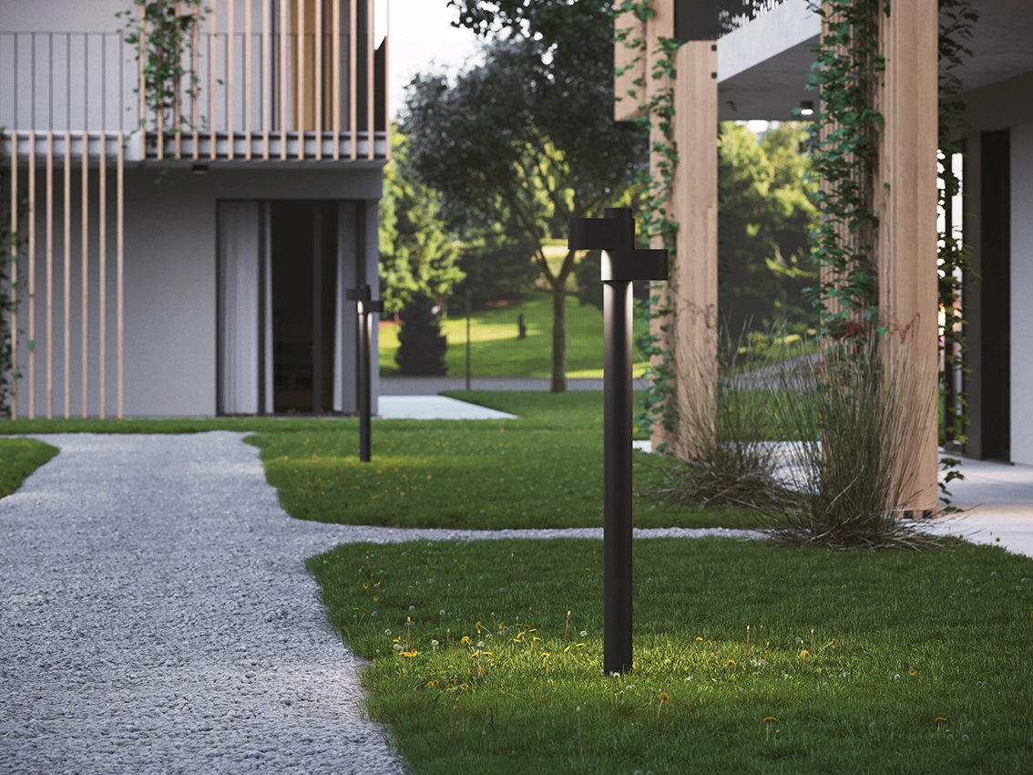 Floor lamp, Linear pendant, Outdoor bollard At first glance a distinct geometric silhouette. On closer …