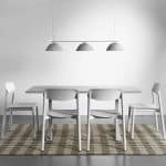 The Penne chair is stackable, and, owing to its weight – only 3,8 kg -, it is very easy to handle. The wooden tubes/legs, come in ash – natural or stained, as well as in oak or walnut, allowing the user to create monochrome or colourful combinations. The seat and back come in polypropylene – grey, black or white. All parts are assembled with screws making it easy to take the chair apart and recycle the components.