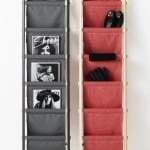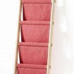 a ladder with draped fabric. It can be used for storing everything