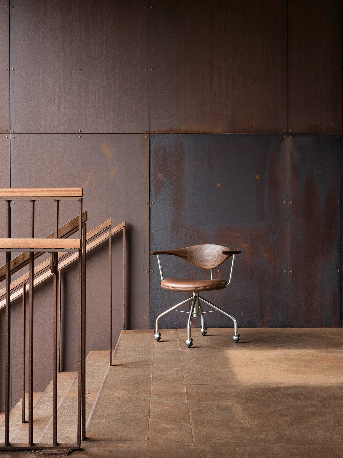 Wegner was inspired by the critique of Consultant, Professor and Doctor of Medicine Egill Snorrason PhD, which was aimed at the entire Danish design and furniture trade for not paying attention to ergonomics. In his critique, however, Snorrason had pointed out that Wegner’s Cow Horn Chair was a good example of ergonomics done right, which was taken into consideration when designing the Swivel Chair.