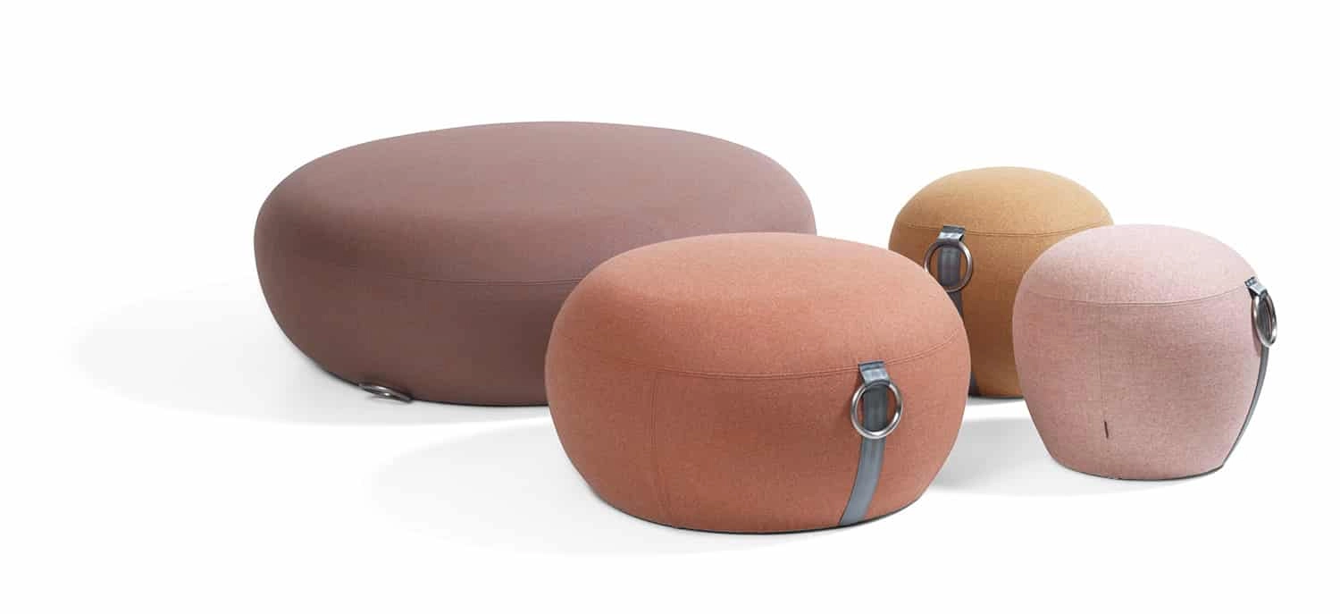 Pouffes and footstools are often moved to where they’re needed at that particular time. We emphasise this movability with a functional piercing; a ring that can be used as a practical handle. Pucca comes in three sizes; Pucca 1; the smallest, Pucca 2; the middle size and Pucca 3; the biggest.