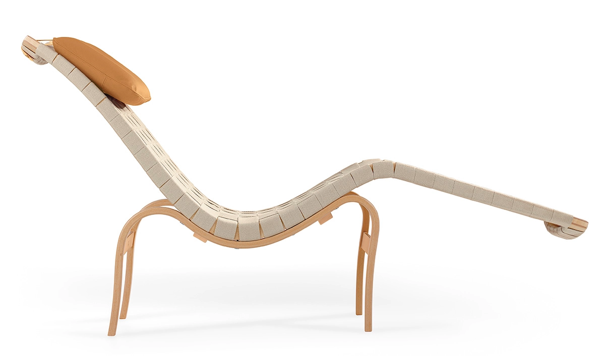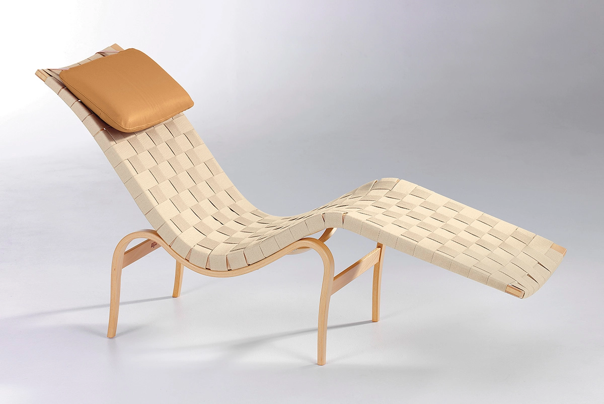 Bruno Mathsson Paris daybed featuring bent laminated beech frame with plaited webbing celebrating 80th anniversary