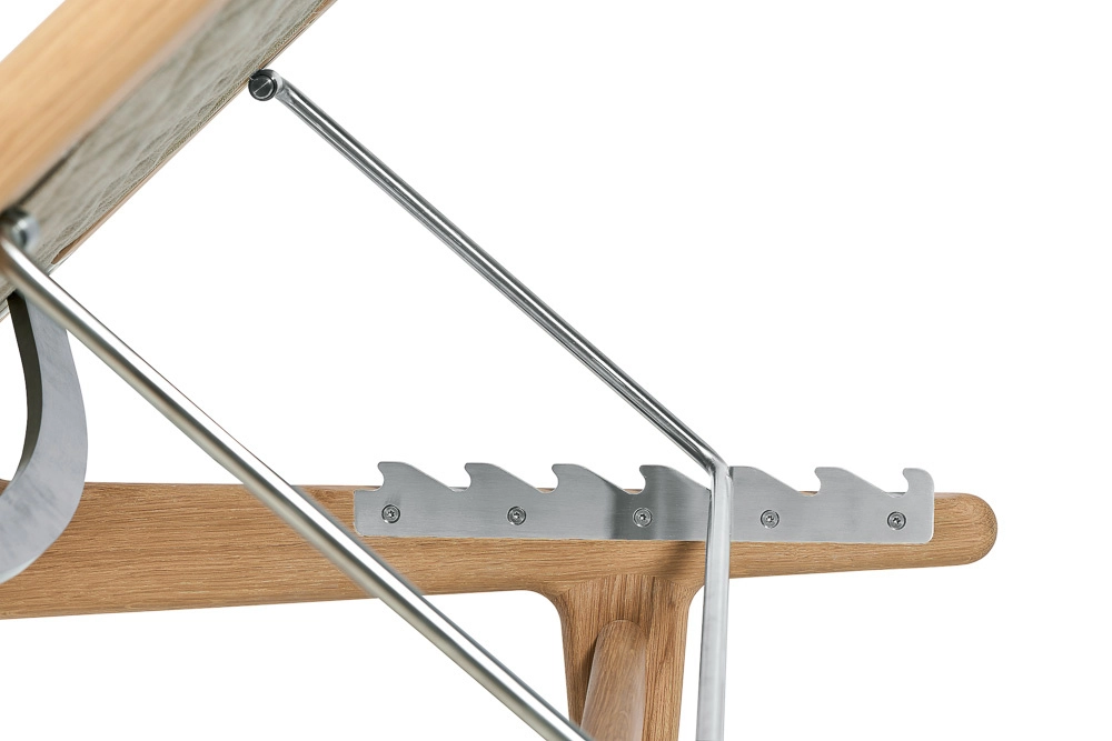 Although GE1 consists of two elements, it does not necessarily mean that the footrest must be placed in elongation of the seating element with the adjustable back. The choice is entirely up to the user. That way, the concept fulfills what Wegner had imagined back in the beginning of the golden age of Danish furniture design.