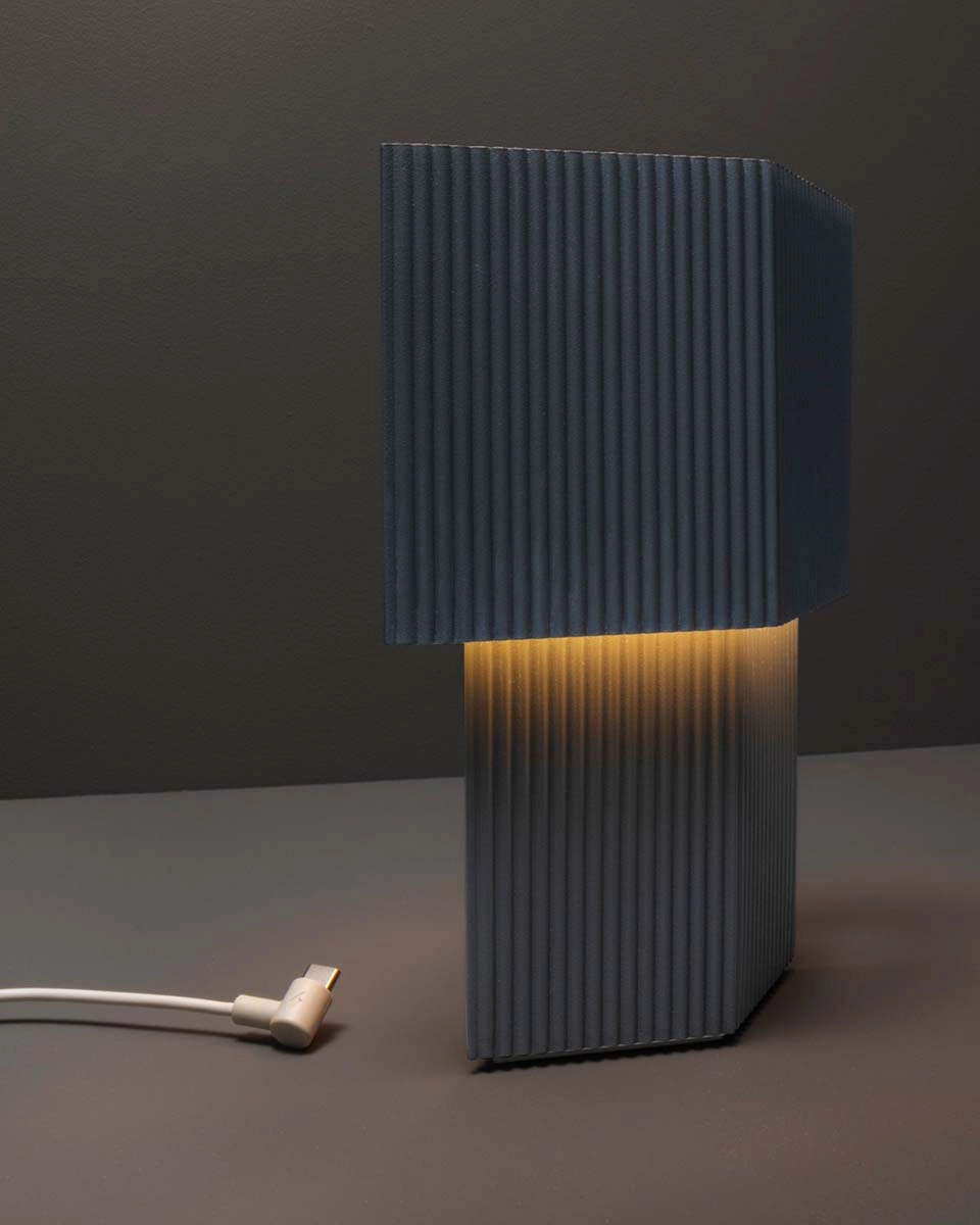 Romb Mini rechargeable table lamp Broberg Ridderstråle Pholc aluminum cardboard-inspired geometric design