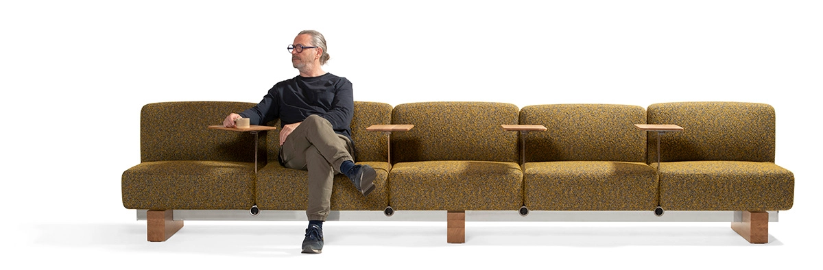 Build a long straight line interspaced with armrests, writing tablets and electricity or customize it open and inviting with as few additions as possible. Double the width with a causal side to nest in, and a stricter front for a short stay on the go. Rut is all flexibility and will favor slowness and lingering comfort as well as allow for temporary seating. Compose and rearrange according to functional and aesthetic needs.