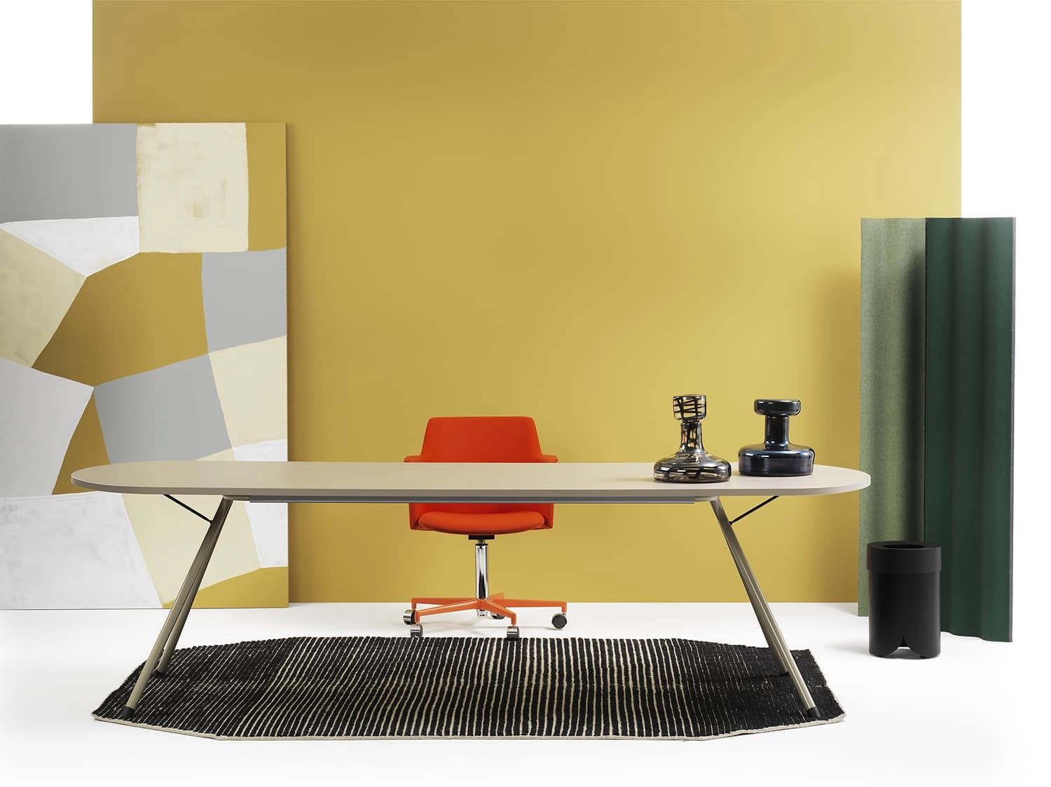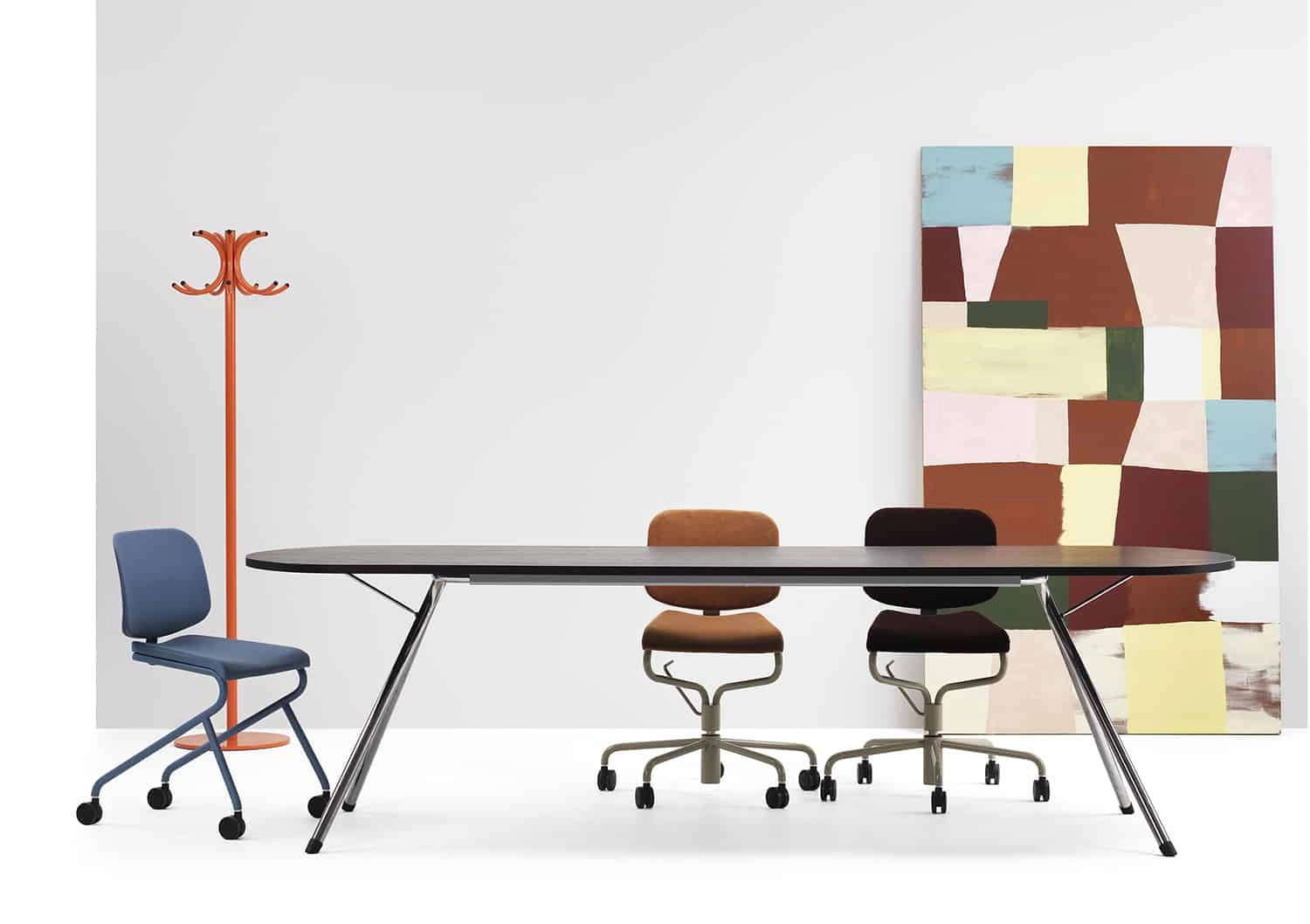 Anya Sebton explains: “For me, it’s vital that the design of this table can work in every room; it’s a table for different kinds of meeting-places, in situations both formal and informal. Nowadays we don’t only meet in dedicated conference rooms, but also in the break room or hotel lobby, for example. S18 should be a meeting table for any environment.”