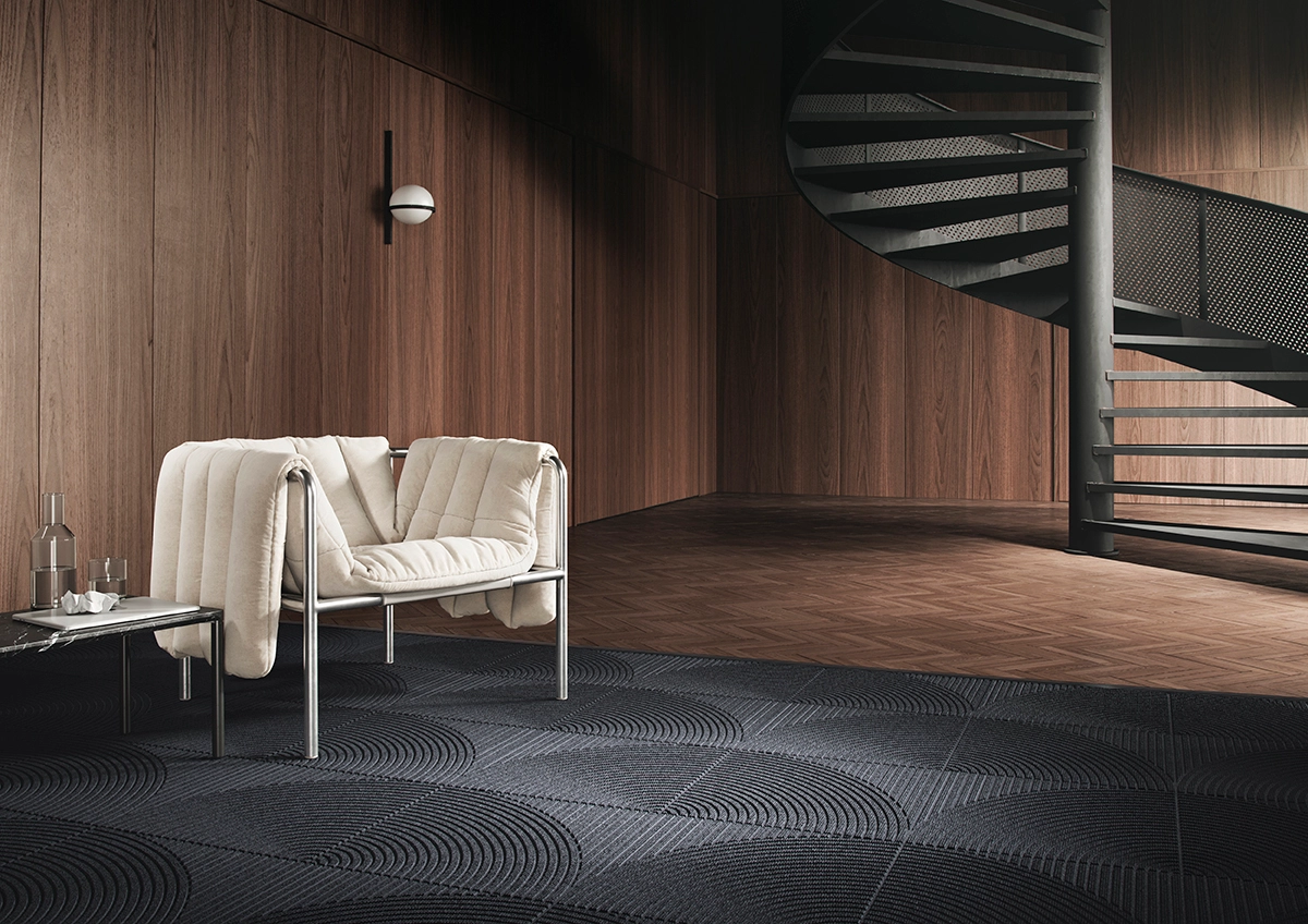 Zen Entrance System is a range of carpet tiles designed for larger, high-traffic communal areas, corridors or hallways. With its three-dimensional surface, the flooring offers a scratch and absorption effect that keeps dirt and moisture in the pile, so the surface looks clean and stays dry. The material used is 100 per cent recycled PET plastic. The elements can be laid in all directions and easily cleaned and replaced when necessary. “The tiles come in three colours and subtle patterns so they can be combined in countless ways, adding design to any interior project,” the jury said of its choice.