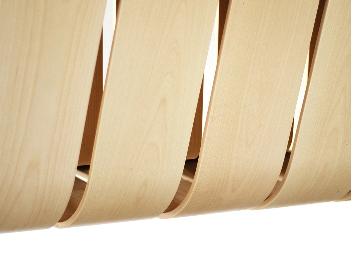 A new bench for indoor use. As its name suggests, the Serpentin bench creates the impression of a swirling form. At first glance, the eye can see a sleek strip of wood winding around the bars of a wooden frame. A closer look reveals a seat and backrest crafted from a continuous band of birch, inviting onlookers to sit in comfort and enjoy the innovation and craftsmanship under-pinning the design. The bench’s shape is sure to inspire curiosity and spark conversation about its construction and form. The bench was created through a technique Marc Hoogendijk calls ‘technomimetics’. Reflecting on how the concept of biomimicry leads to products inspired by nature, Hoogendijk coined the term technomimetics to describe how manmade objects can spark new designs. Serpentin, for example, finds its inspiration from cardboard tubes.