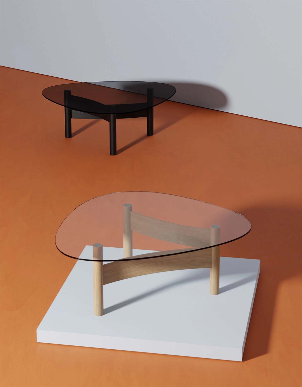 “The Sia table was created through a close collaboration with LK Hjelle. The starting point was a desire for a three-legged table with elements of both glass and wood. We started looking at different compositions and joints that could create an interesting expression. With simple mock ups and sketches we arrived at a table where two curved edges come together in an exciting joint in one leg. The table has a simple and understandable expression with refined details. The structure of the table has been carefully thought out, where good solutions have emerged through a great collaboration with LK Hjelle.”