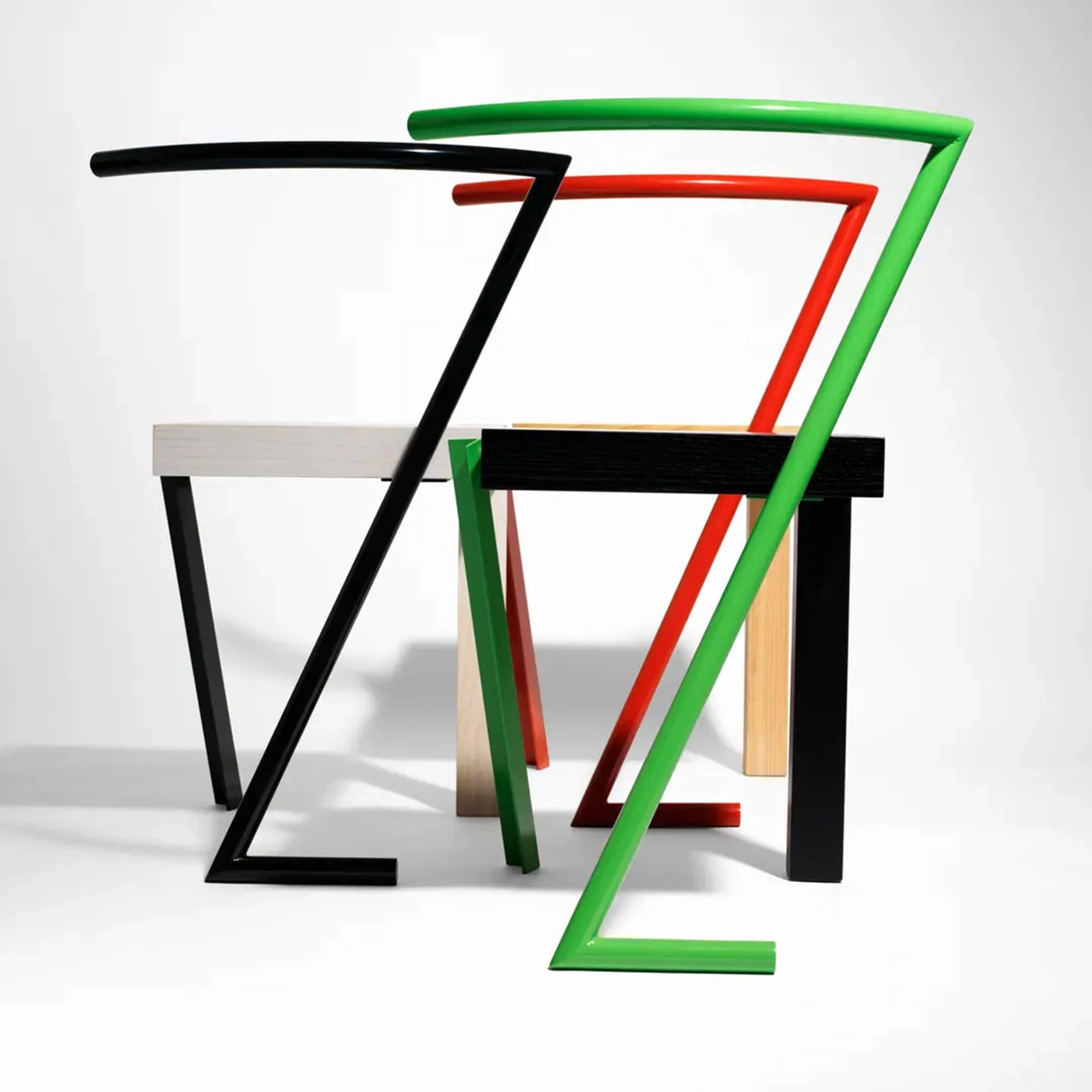 The Tango chair by Sigurdur Gústafsson for Källemo presents bold color combinations through lacquered steel bases paired with ash wood seats. Available in three limited editions: red base with natural ash (99 pieces), green base with black-stained ash (49 pieces), and black base with whitewashed ash (40 pieces). This collection demonstrates Gústafsson’s color philosophy born from Iceland’s seemingly colorless landscape, creating vibrant furniture that bridges industrial materials with natural wood craftsmanship.