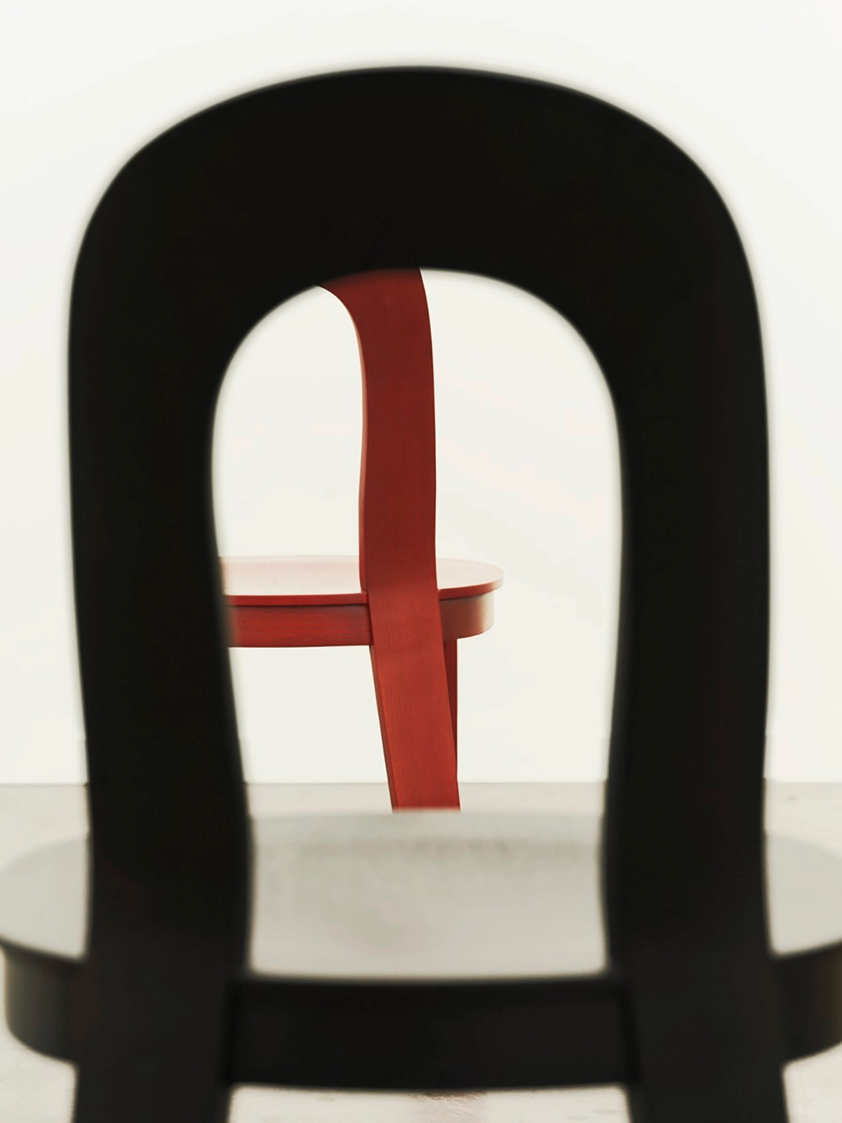 Olivia Chair is available in five lacquered finishes, each enhancing the graphic clarity of its form. Whether placed around a dining table, in a café, or a quiet reading corner, it offers a moment of rest — and refinement.