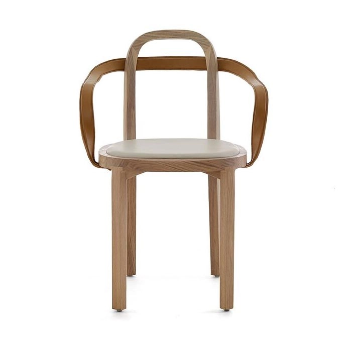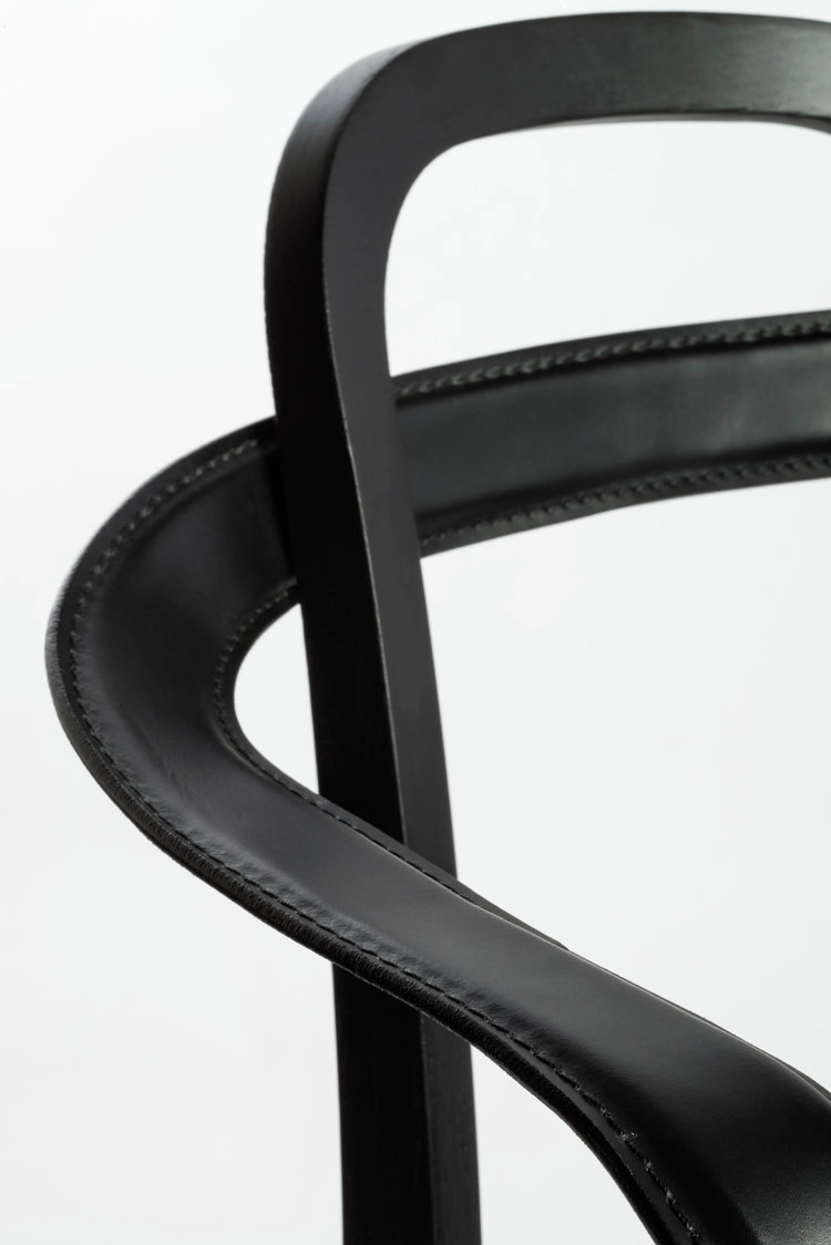 The armrest is a bended metal covered with leather curved around the chair creating a beautiful and slender look. Siro with Armrests can be used as a dining chair or side chair.